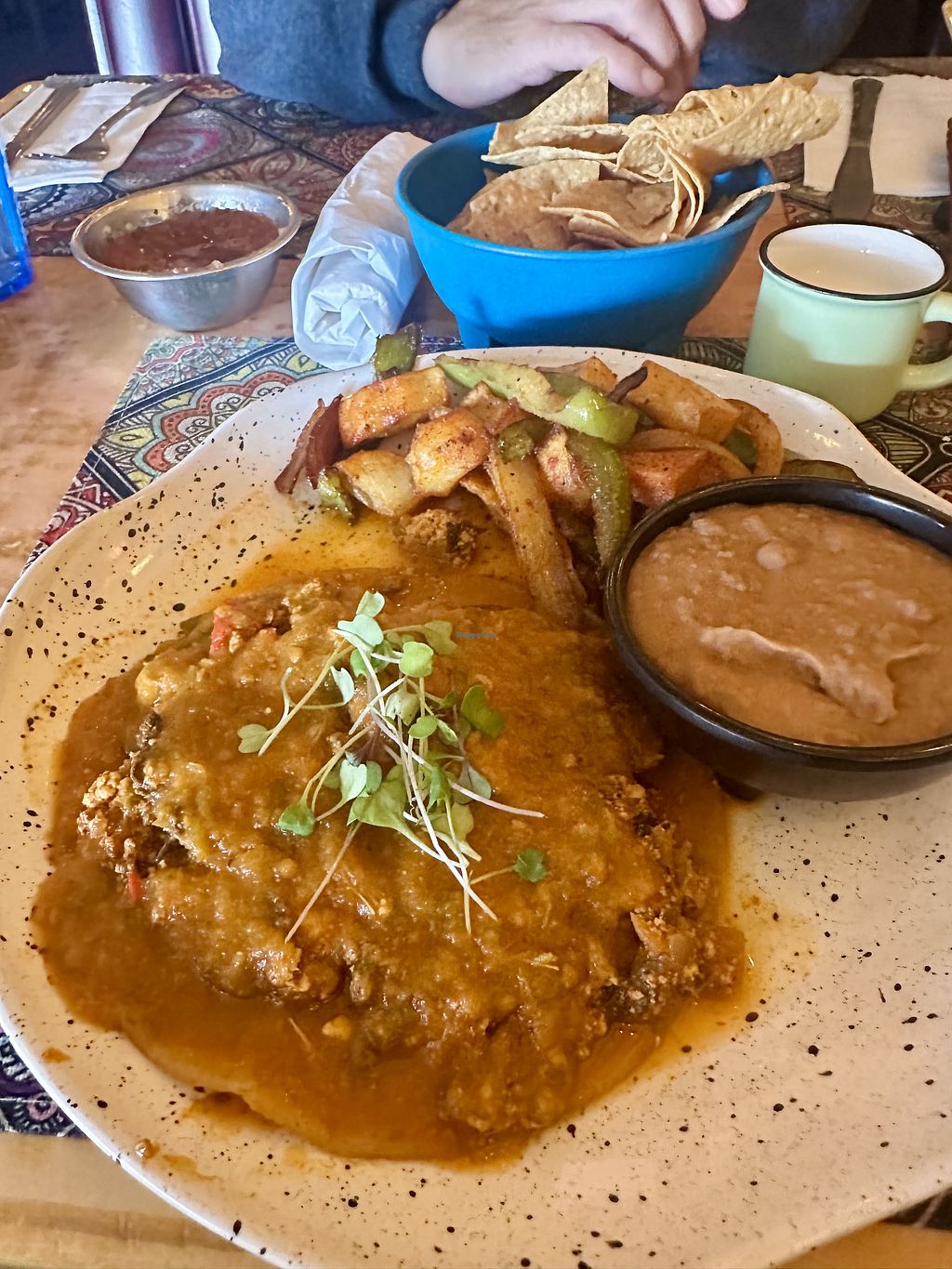We love coming grrr for great Mexican food. The enchiladas and tostadas are our go to but you can get vegan chicken or vegan chorizo on anything. Highly recommend!