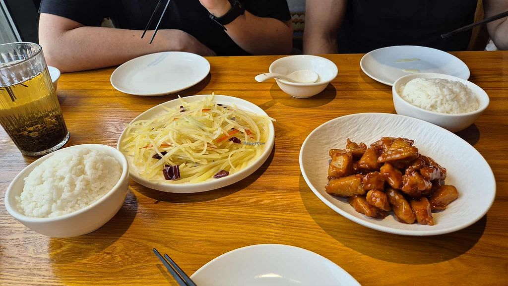 I was starving after a week in Beijing. It is almost impossible to find any decent place there. Then we moved to Shanghai and suddenly it turned out there is plenty of vegan and vegetarian places. Last but not least we found Lotus Vegan and we found the food very good. We tested vegan chinese burger, noodle soup, 4 types of dimsums and orange chicken. We will come again and highly recommend it