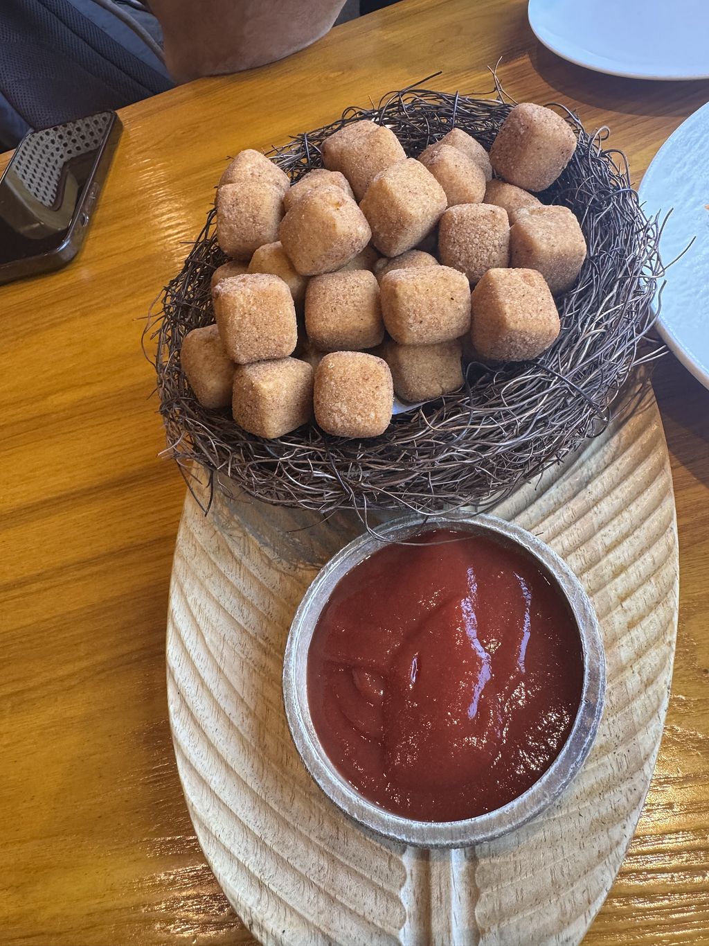 We weren’t super hungry, otherwise we would’ve ordered way more, but everything we tried was great. The restaurant is on the second floor and had a calm, cozy vibe. Overall, really good food, really good energy, and we would definitely come back again.