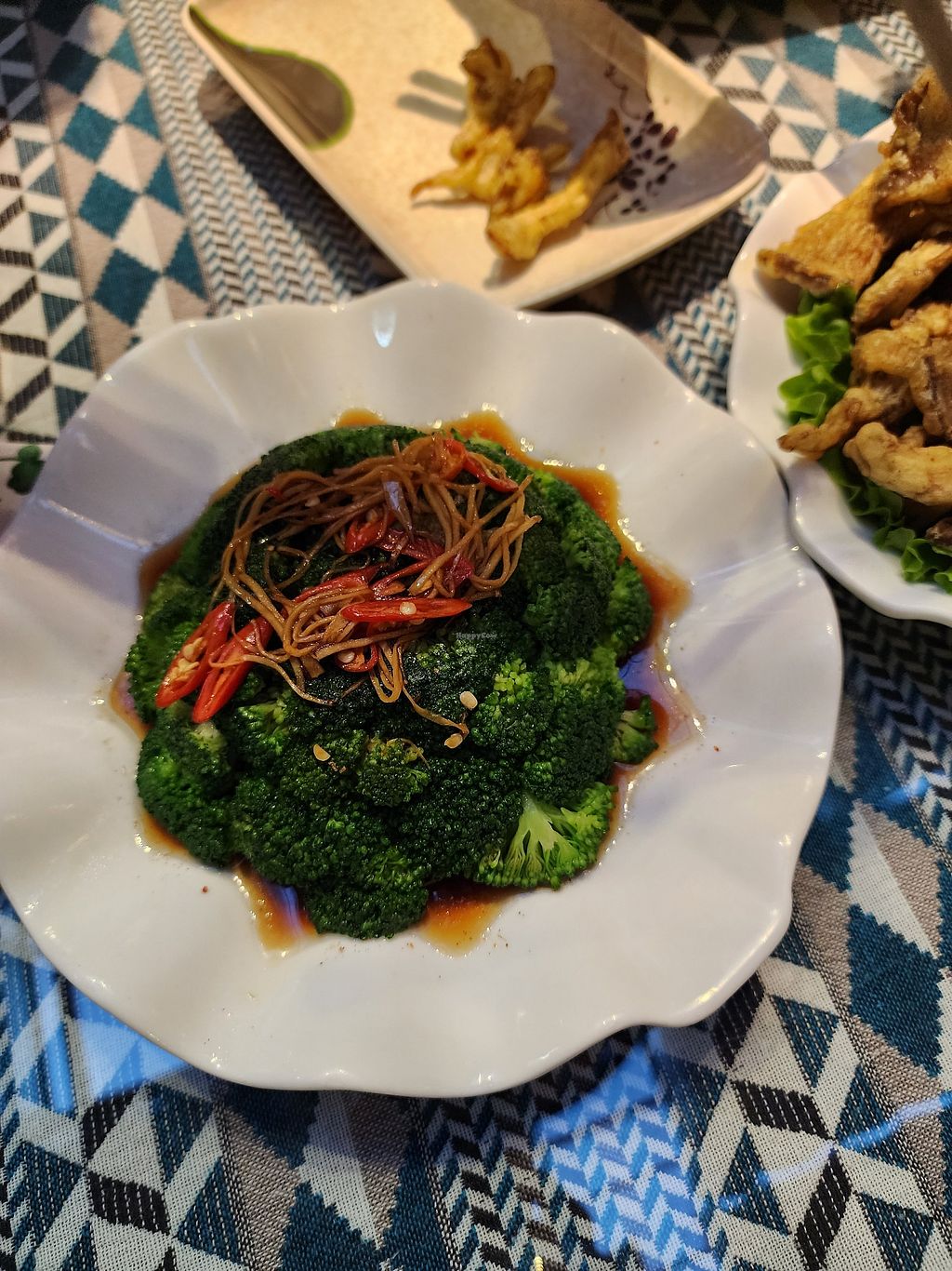 As of Nov. 2024, the only vegan restaurant in this ancient town. Run by a small family. Offers a plate of 20 dumplings which can be divided into four different fillings if wanted. Fillings may include radish, fennel, celery, and mushrooms. Also serves stir fried greens (one was a regional lake plant flower & the other were some bean tops). Good portion sizes. All are recommended. Open Mon-Sun 9:00am-8:00pm.
