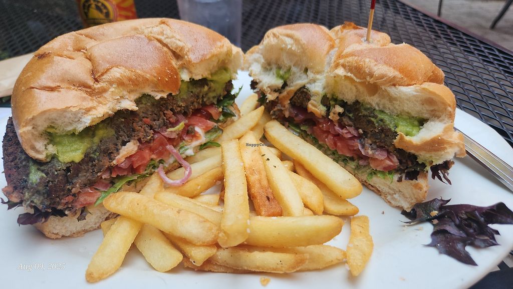 Read moreOrdered made in house black bean burger, was HUGE! Murica size burger. Was a lol busy and food came out sooooo quick. No draft, only can beer.
