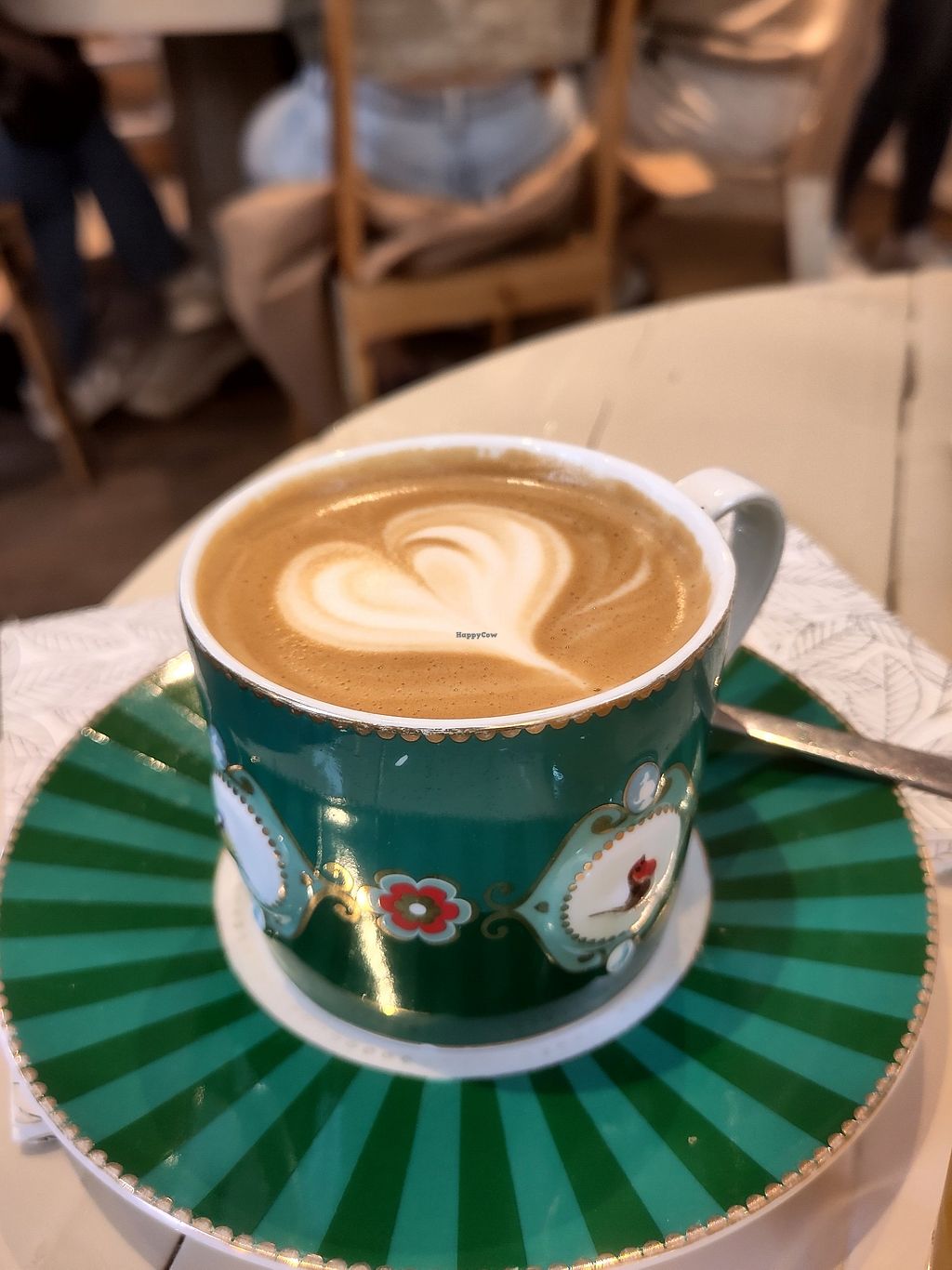 Read moreThey serve really good coffe specialties (also as vegan options) and there are some vegan Sandwiches. When I was there they were sold out, but the waiter was very friendly and offered me a small bread with avocado-cream which I liked but paid like 6€ for.