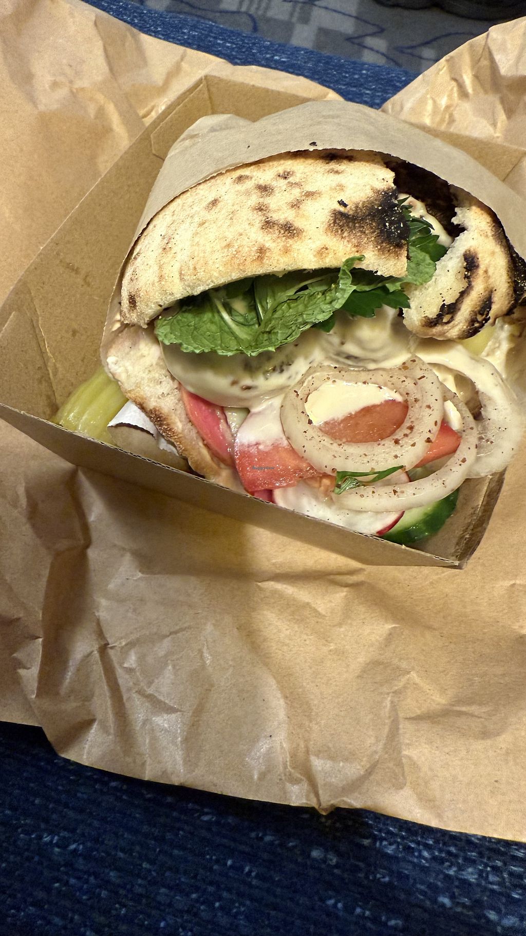 I had the goddess falafel pitta with chips and it was amazing! I added the chilli sauce and it was the perfect amount of spicy. I think probably the best falafel i’ve had and all of the sauces were so flavourful. My friend had the aubergine pitta without the egg to make it vegan, i had a bit and this was also so tasty - especially the garlic sauce! Portion sizes were good, atmosphere and staff were lovely and wasn’t too expensive for the centre of Sydney!