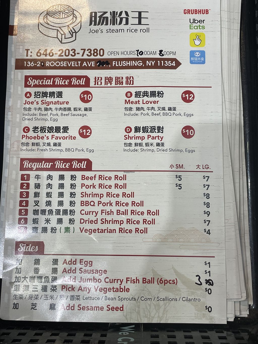 Serves meat, vegan options available. Steamed rice noodles in a food court setting. Option to build a custom rice roll. Steamed rice roll is vegan. Option to add vegetables and sauces. Cold noodles are vegan - specify no egg. Open Mon-Sun 9:00am-7:30pm.