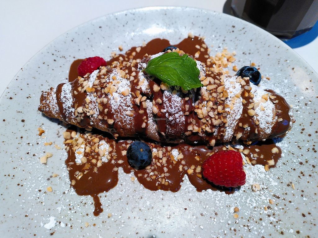 The warm chocolate sauce unfortunately could not cover up the fact that the croissant was stale already.
