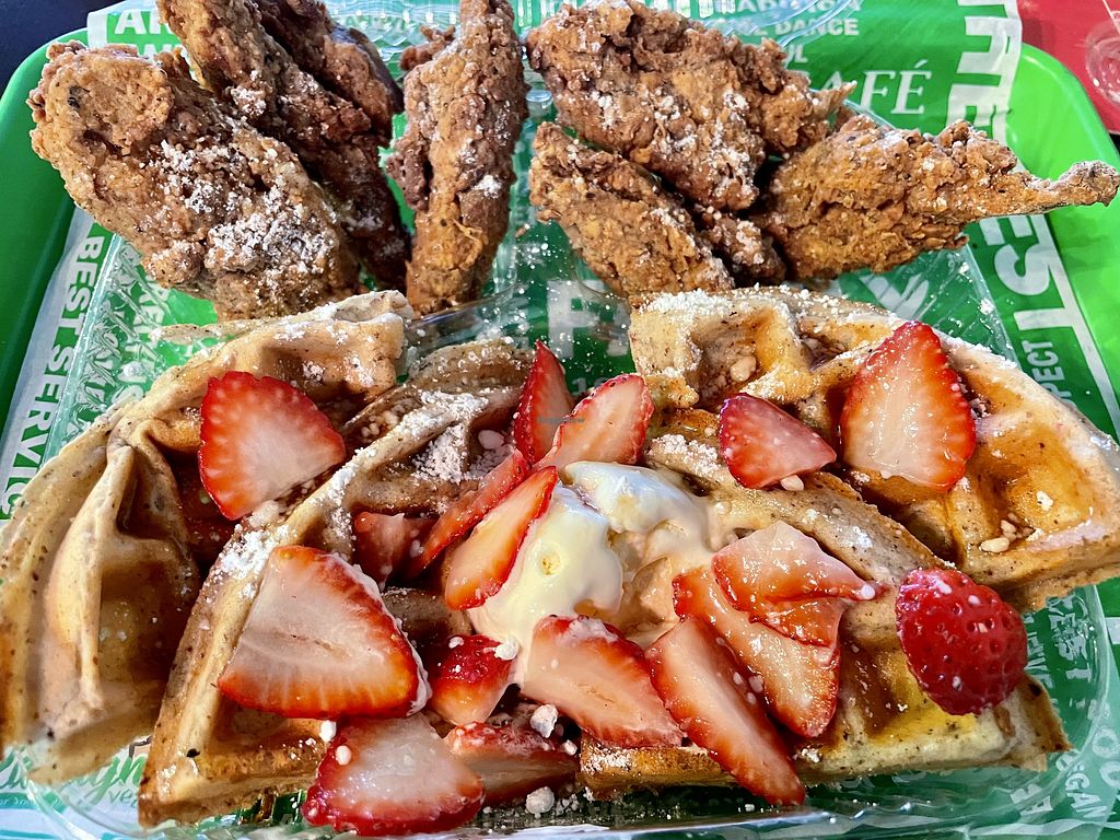 The chick’n and waffles was a reasonable portion but so overpriced!