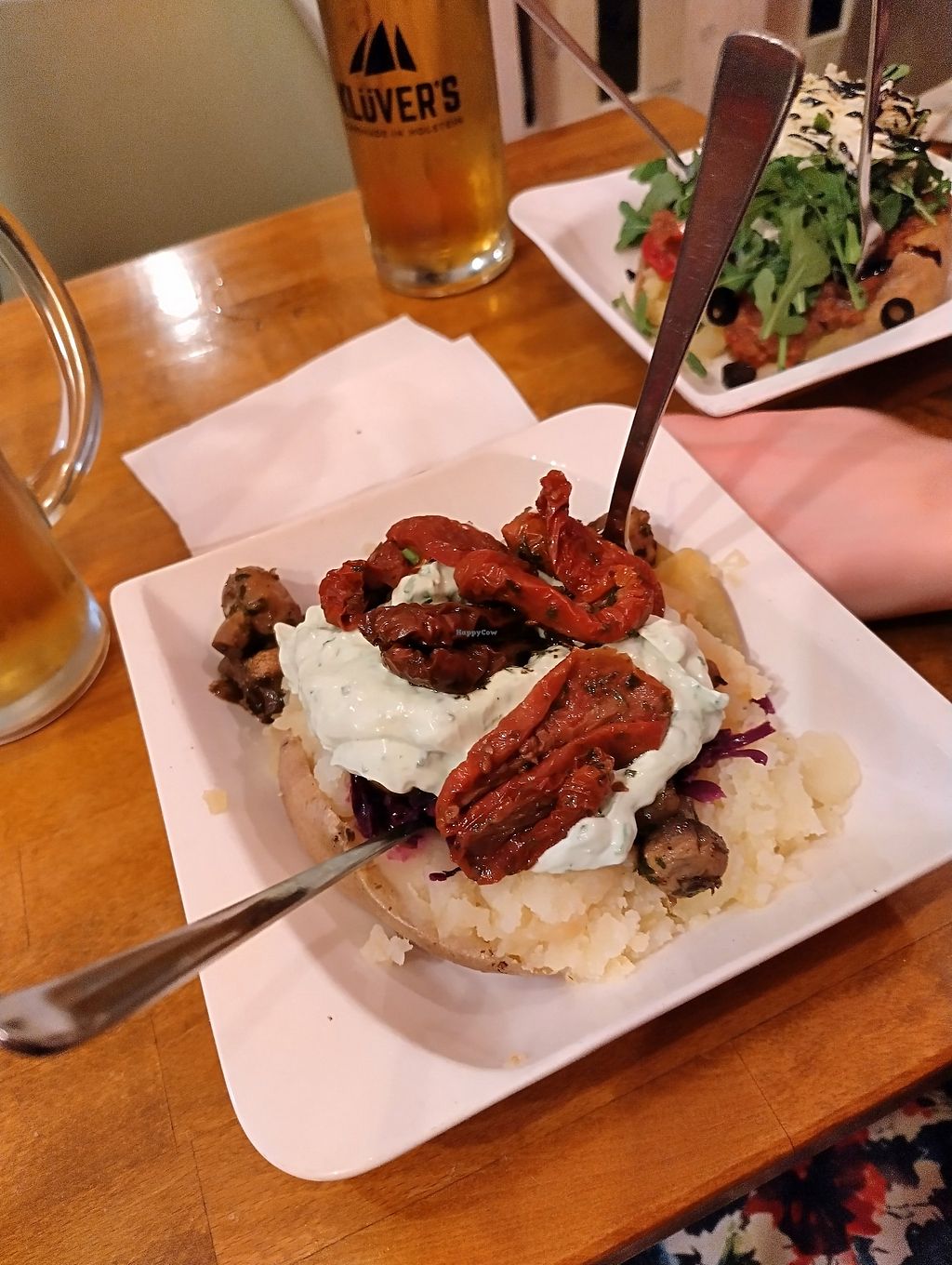 Jede angebotene Ofenkartoffel-Variation ist vegan zu bekommen. Einfach bei der Bestellung angeben, dass es vegan sein darf und schon ersetzt die freundliche Gastgeberin die Bestandteile mit Dir gemeinsam durch vegane Optionen. Fantastisch. Okay, manche Zusammenstellungen machen damit keinen Sinn...