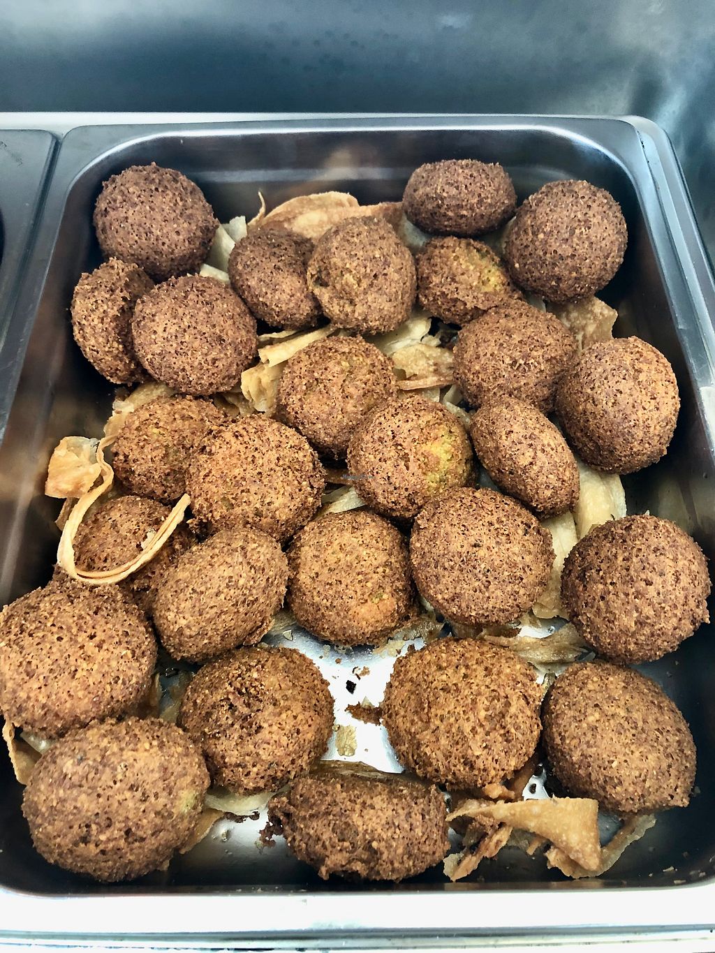 Serves meat, vegan options available. Arabic buffet offering a variety of vegetarian items such as falafel, hummus, salads, dolmas, pickled vegetables, and cooked vegetables. Please note some items may contain ghee or dairy - ask staff. Open Mon-Sun 8:00am-1:00am.