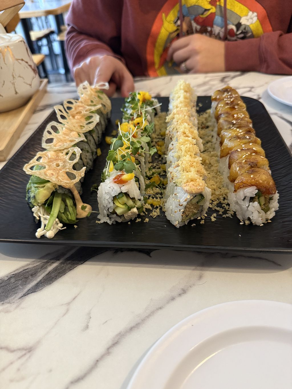 They had so many vegan rolls, including the vegan sushi pizza, and a few vegan dessert options. Definitely my new favorite sushi place! They also gave me separate vegan sauces, which I appreciated
