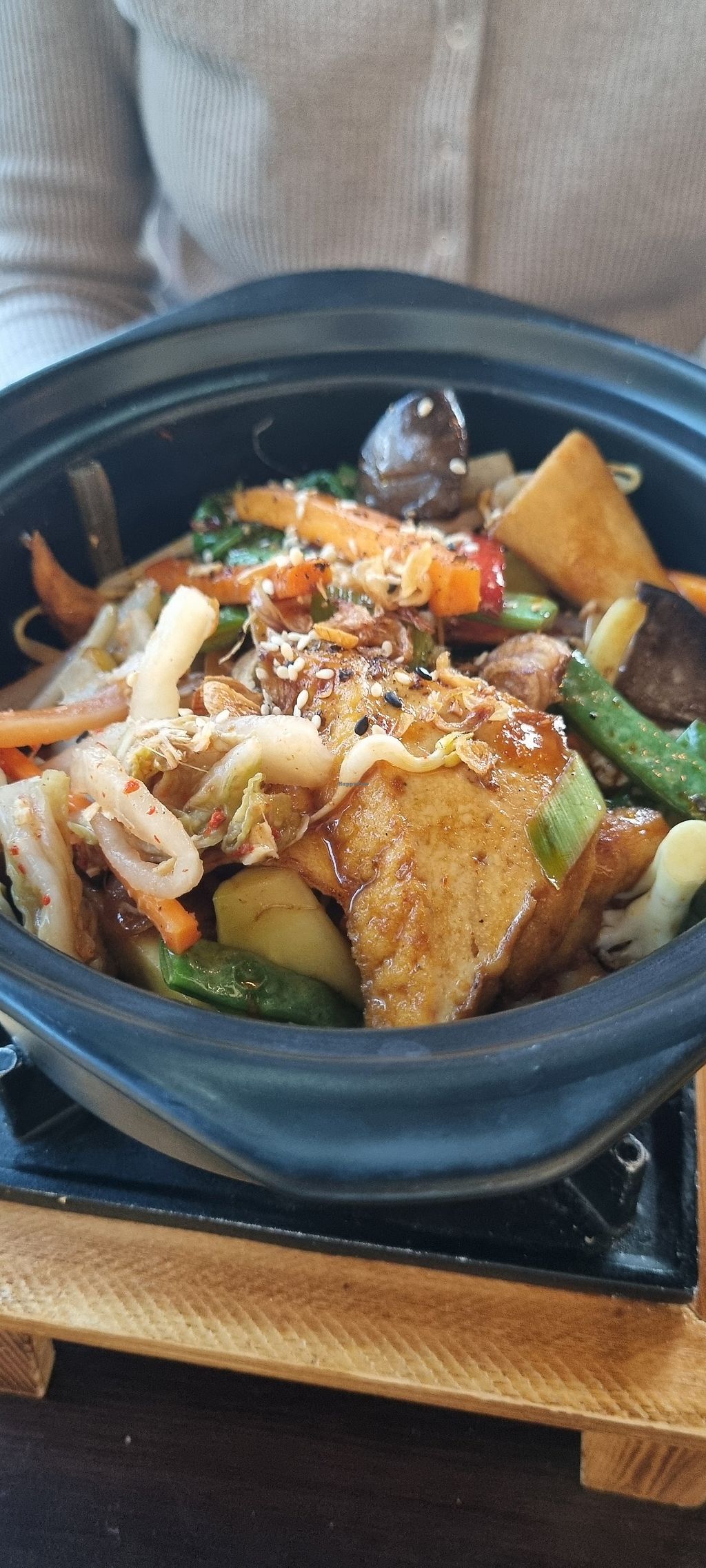 If you like Asian food you will love this place. So much choice which was a real problem as it all sounded amazing. Many dishes have a choice of tofu, vegan chicken and vegan duck.
