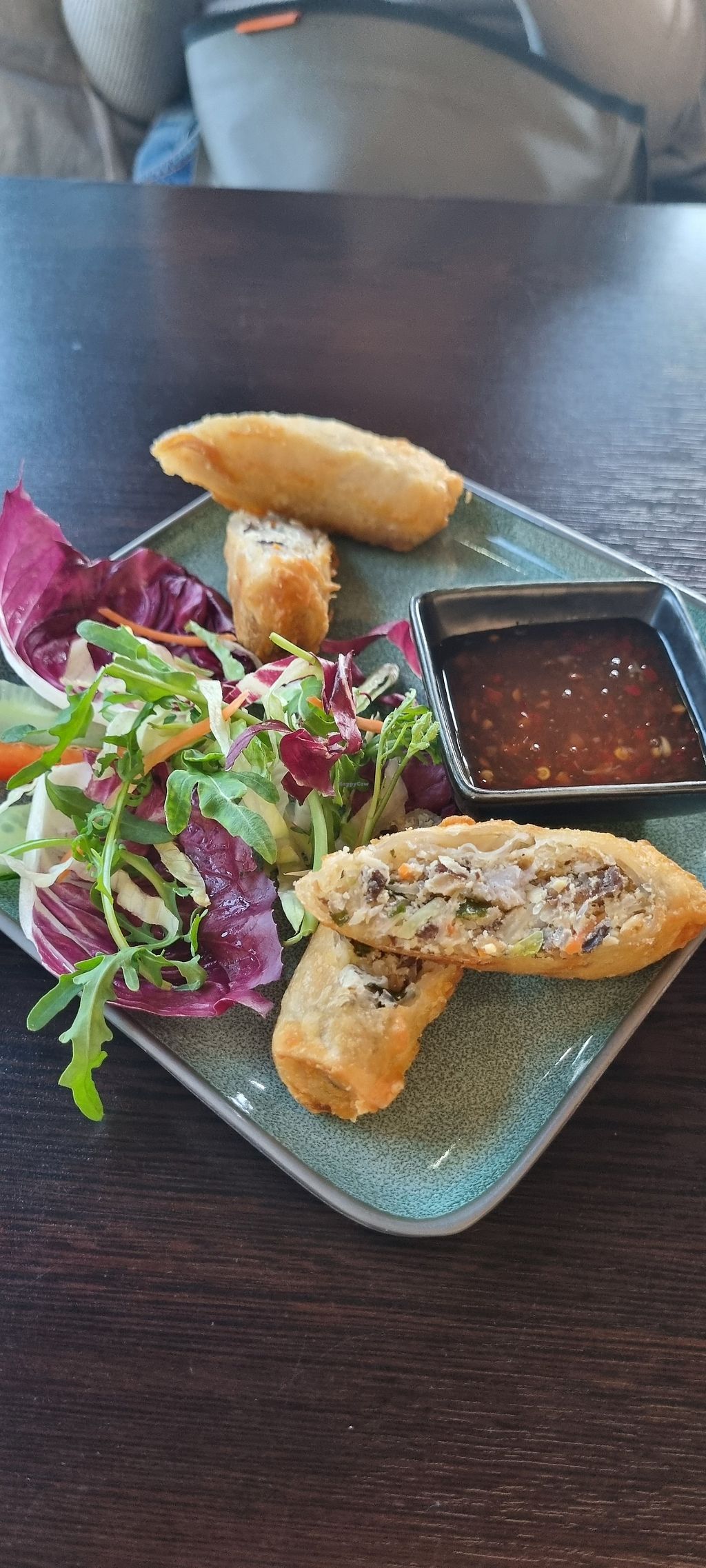 We had 2 starters (1: Goi cuon and2: Nem Chien) 2 mains (63: Ca Koh Ram and 66c: Mango Mekong Delta with vegan duck) and 1 mango sticky rice as desert. I did not love the starters and desert, but the main dishes were SO good. The vegan duck was so tender and crispy and the sauce was incredible. Definitely recommend coming here for their rice dishes! The sushi also looked good, but we did not try them.