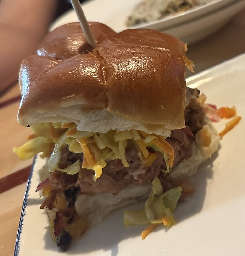 Read moreMy wife and I checked this place out today. We’ve seen it, but just have never made it here before. My wife got the black bean burger without the cheese or the coleslaw on top and I got the jackfruit without the cheese and coleslaw. Both were very good. Now here’s the thing, I had to get the $15 vegan cheesecake. I can’t pass that up. When they brought it out, I swear it was a tiny little square no more than 2 1/2 inches x 2 1/2 inches! It was so small, the waiter was kind of embarrassed to deliver it and the chef/owner was watching through the window when he dropped it off. I was initially irritated by it, but the chef came out and explained everything to me and said that he has to special order it and it is not easy to get it. Under normal circumstances, I probably would’ve sent it back. This guy was very engaging, very friendly, and was explaining to me how he wants to make his place even more Vegan friendly. He won me over with that. Lol.