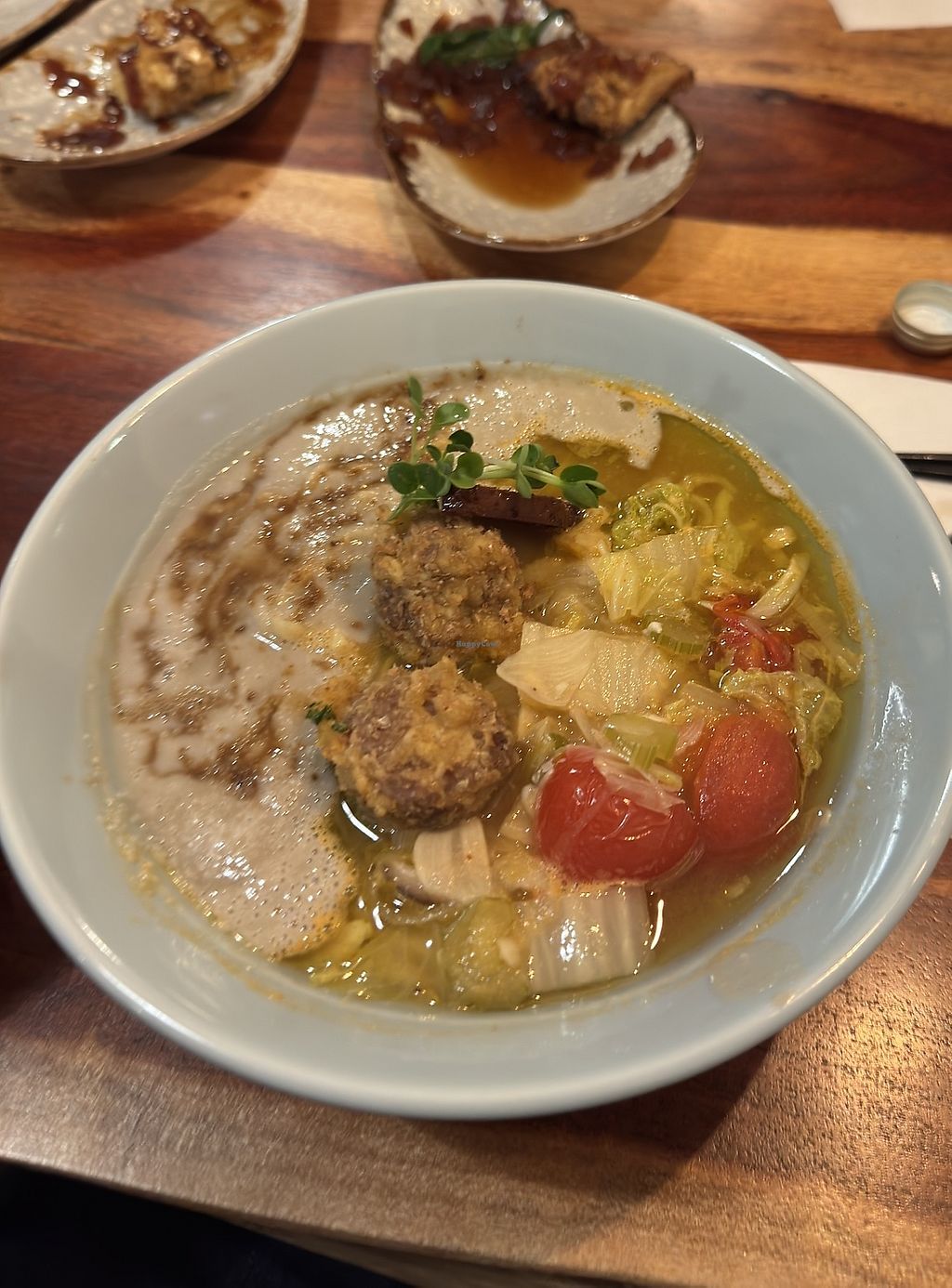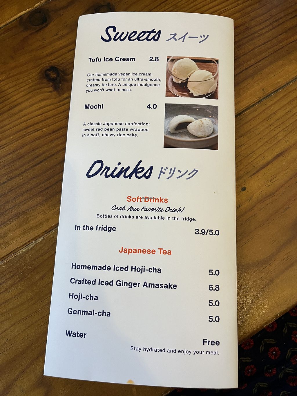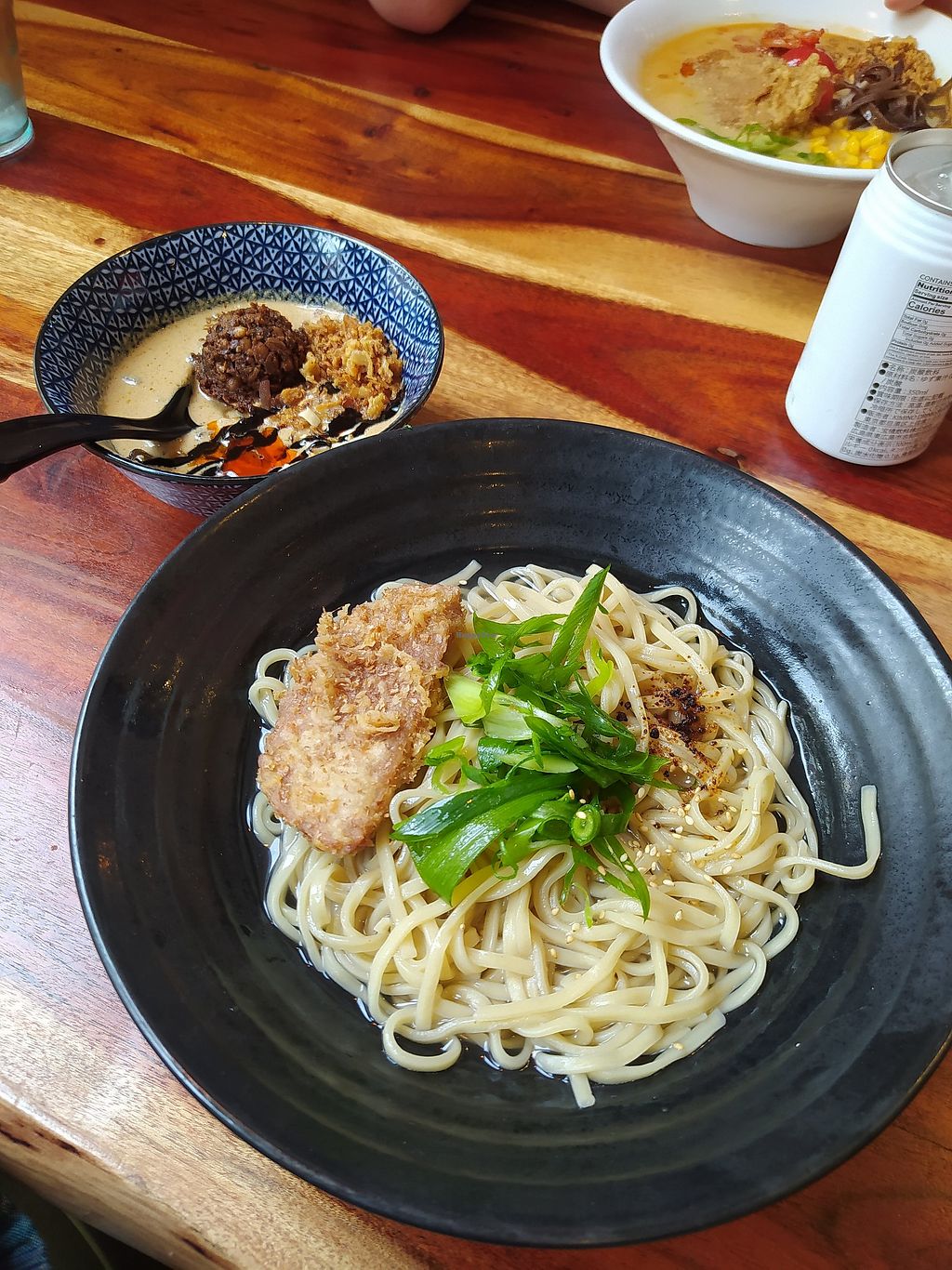 Great vegan ramen. Very creamy broth and noodles with a good bite. The tofu ice cream has a very clean soy flavour and was a nice way to balance out the heaviness with something sweet after the meal.