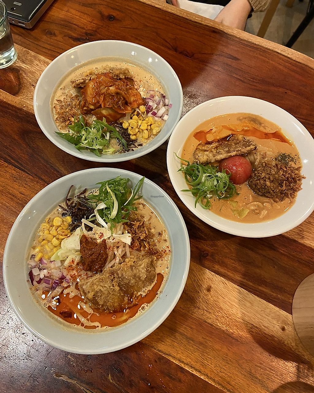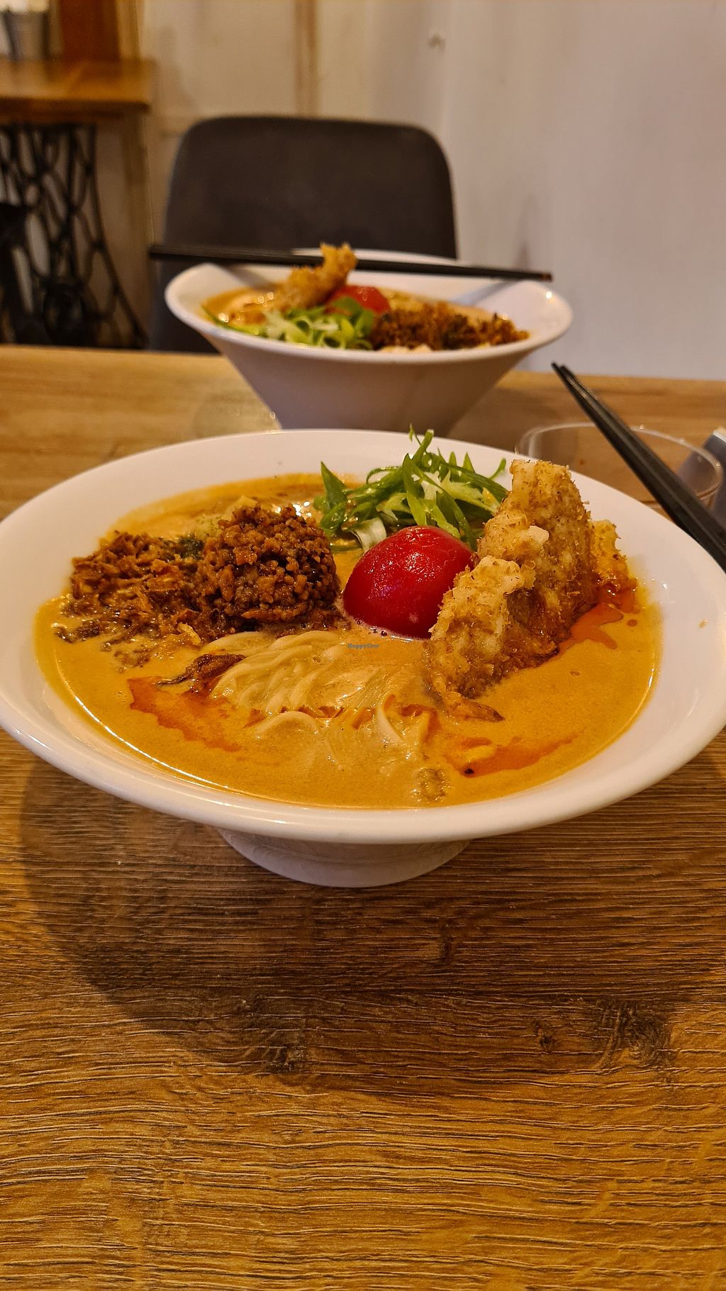Fully vegan! Every Bowl we ate has been perfectly balanced, the noodles are homemade daily and have a nice bite. The service is quick and friendly