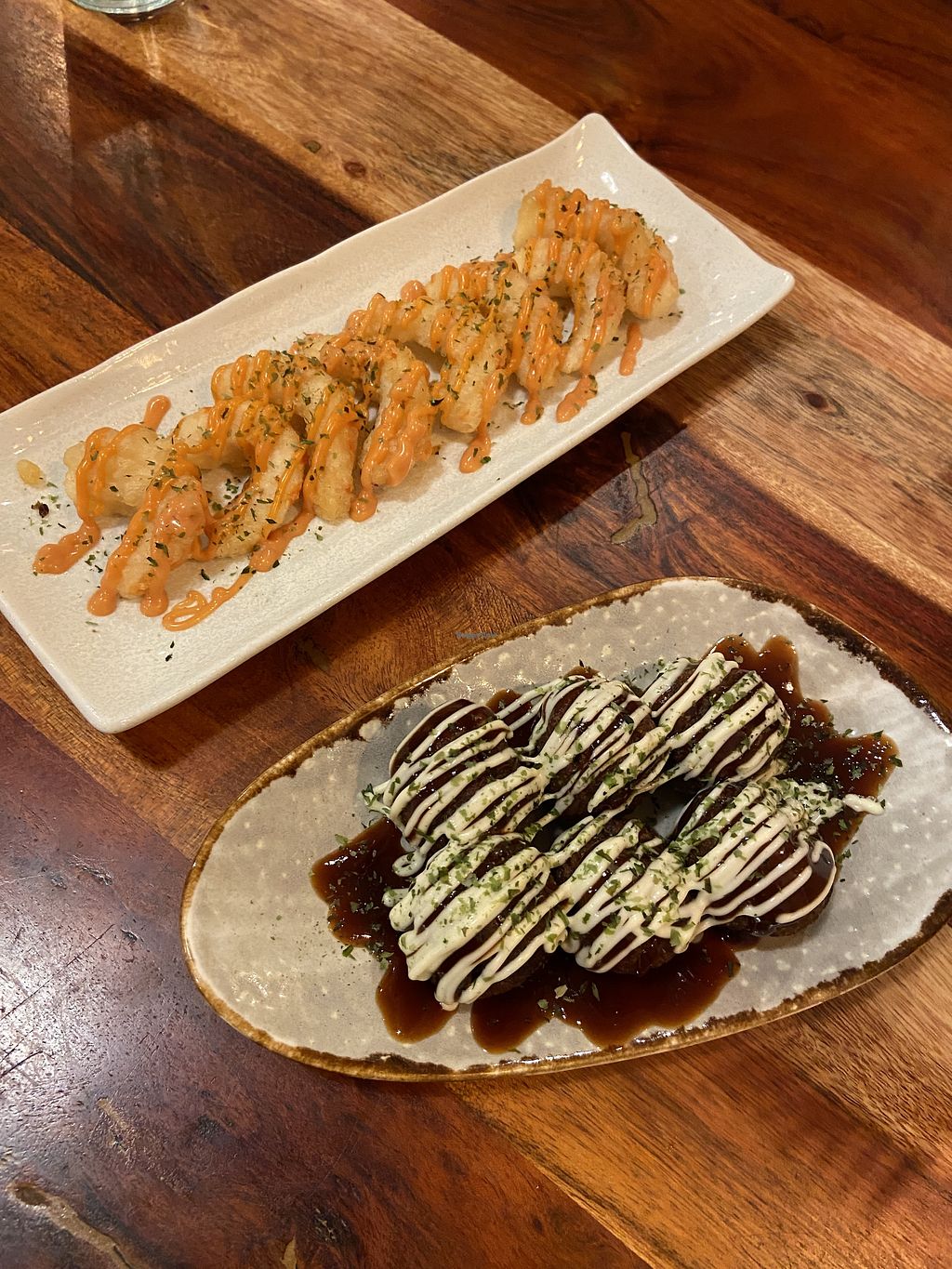 I had the spicy miso ramen and shared the takoyaki and fried shrimp with my friends. The ramen was really good! The broth was creamy and had a nice kick to it. The seitan was pretty good, I think I’d prefer having tofu as an option for protein (but that’s just personal preference). The takoyaki were delicious! I liked the shrimp as well and how crispy it was, I think they could just a bit more salt and/or fishy flavour. Our food arrived quickly and I liked the atmosphere. Would definitely come back here again!
