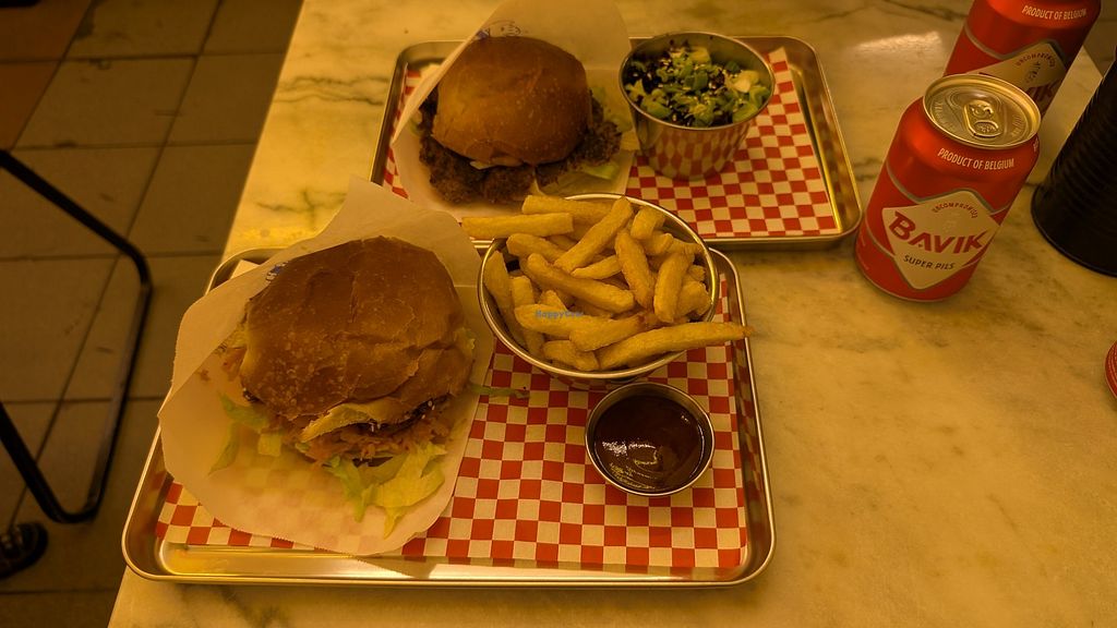 We visited this burger restaurant in Brussels. We ordered the “Korean fried mushroom burger” and the “kitsune tofu burger”. Good quantity, well seasoned. Good prices. It was worth the experience.