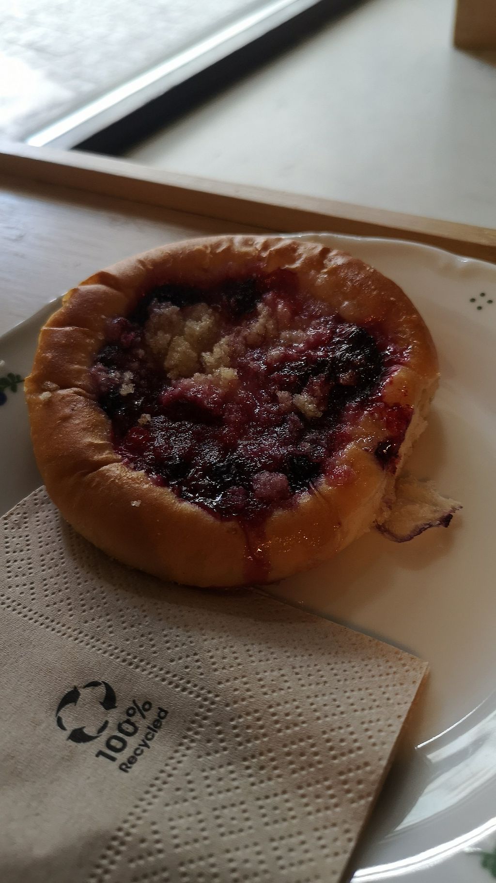 Read moreHands down, alter Schwede. Ein größeres comfort Frühstück gibts wohl nicht. Ich habe mir die 2 to go bestellt, um einen aufzuheben, und habe schlimmerweise noch beide vor Ort verdrückt während ich draußen dem Regen gelauscht habe. So ein fluffiger, milchiger Teig mit dieser süßen Mohnfülle... einfach ein Gedicht. 10/10, würde ich immer wieder holen. Ich glaube die anderen 2 Sorten sind Beeren mit Kokoscreme, das wäre auch interessant