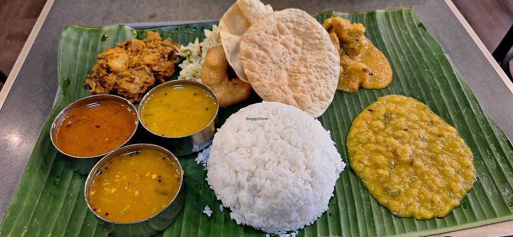 A point off because the menu didn’t say what was vegan and the service was rushed, with no chance for questions. I was able to get through that I wanted no yoghurt or dairy and my rice set meal did come dairy free. The food was really good - super hot and freshly cooked poori, chutney, curry, sambar etc. my partner had the masala dosa (asked for no ghee) and enjoyed that too. Portions are huge #Veganuary