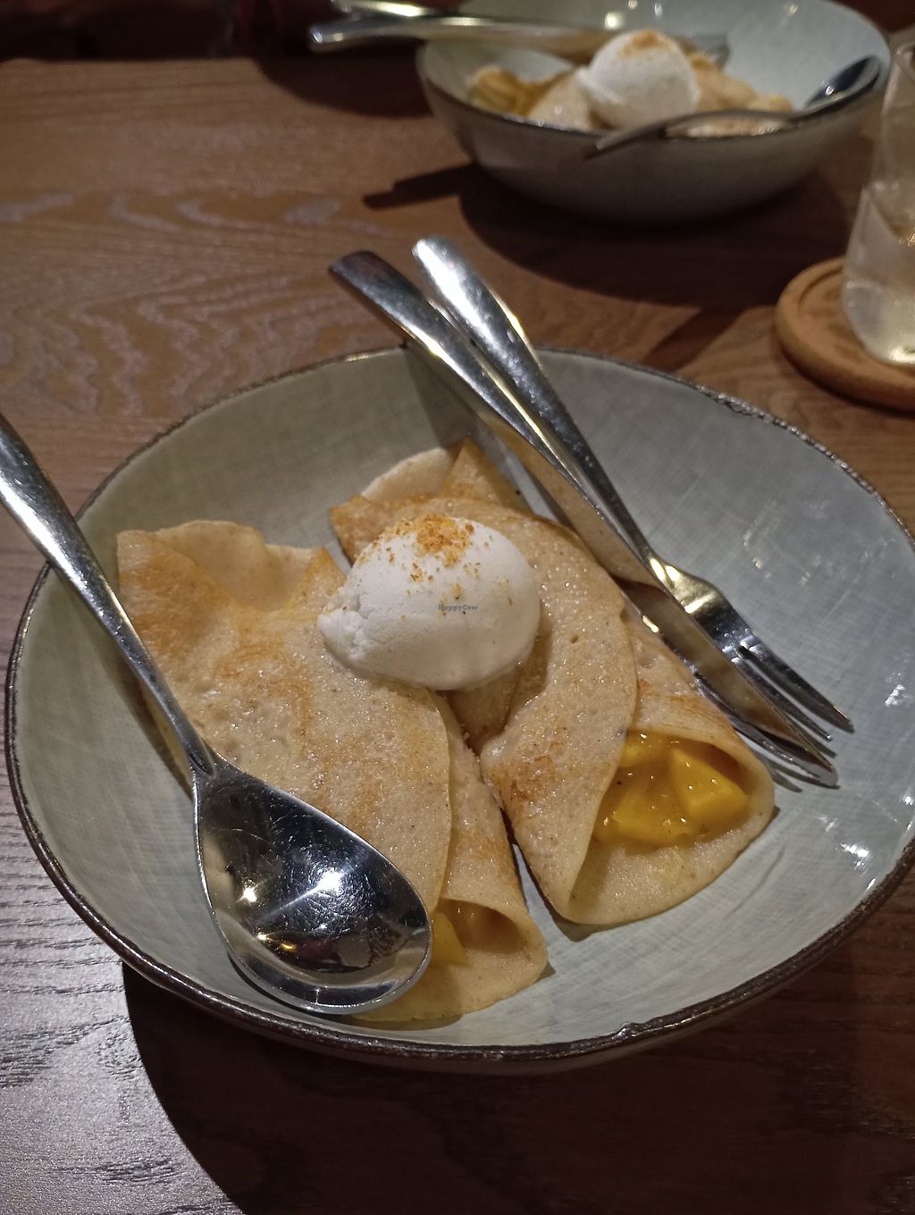 Nice dessert pancakes with coconut ice cream. Takes you to the beach😄