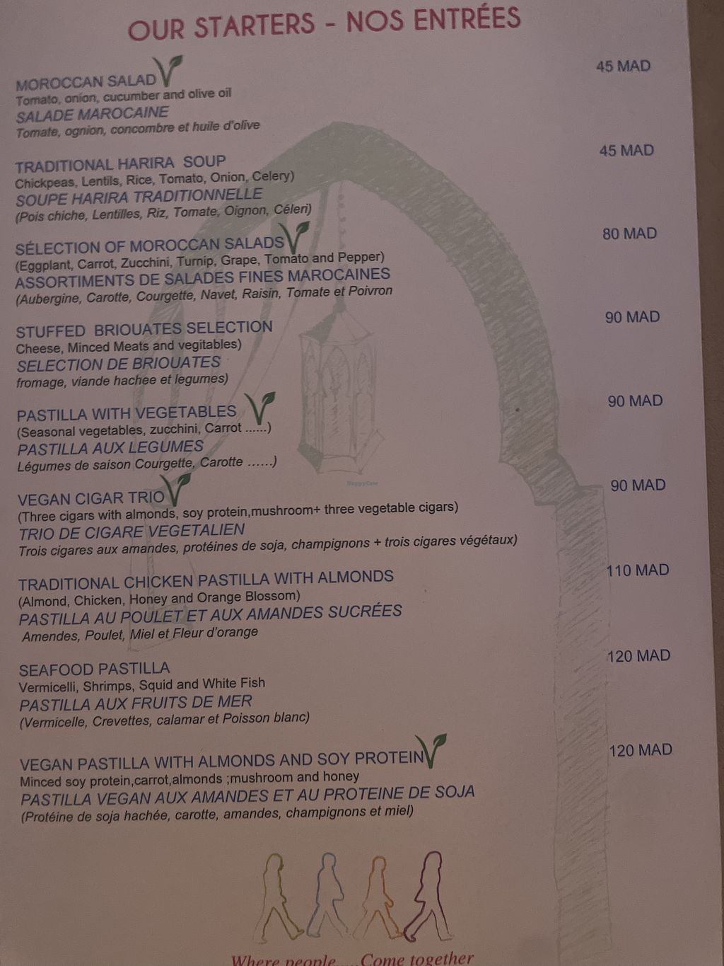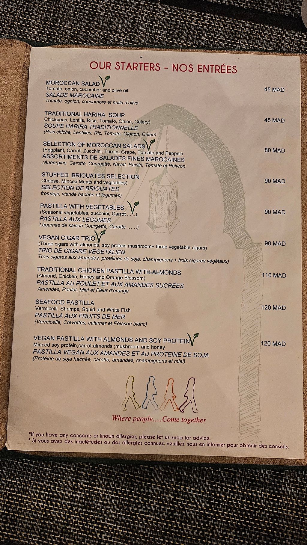 The menu has a couple of hopeful, clearly labeled vegan options. We ordered the bstilla with soy protein, the soy protein was nowhere to be found. Ordered the "vegan burger" which showed up with cheese, and it was admitted that there is no vegan burger in the kitchen at all. The vegetable couscous we ordered was flavorless and smelled like it had been cooked with chicken or meat. Do not go here.