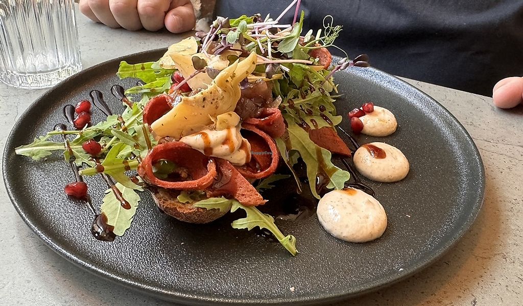 I had the vegan tofu salmon, which was excellent! Presentation, but also taste and portion size, a combination you don't always find together, was on point! Nice staff as well, no problem to get a table for one in the evening.