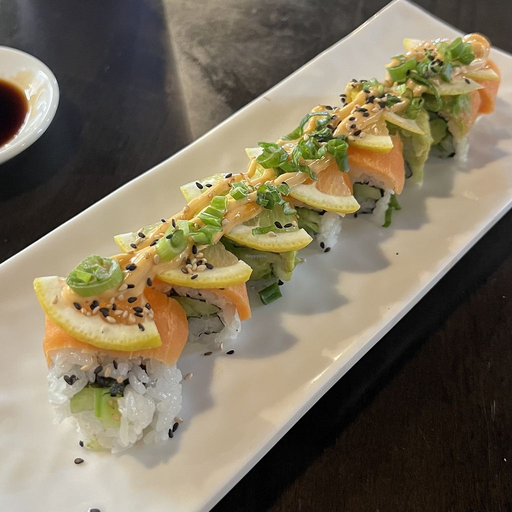Serves meat, vegan options available. Restaurant serving Japanese and Korean cuisine. Vegan offerings consist of vegan ramen and vegan sushi rolls including the garden spring roll, vegan spicy tuna roll, lotus roll, and more. Also provides catering. Open Mon-Sun 11:00am-9:30pm.