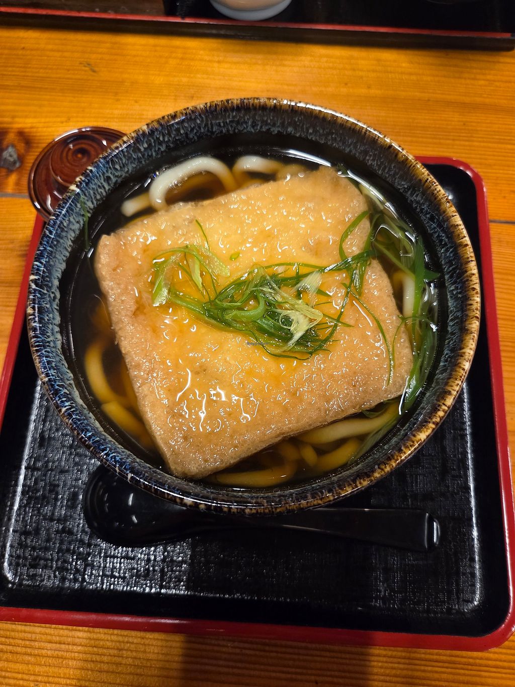 Serves meat, vegan options available. Onsen (Japanese bath) with added restaurant. May go into the restaurant without being in the bath area. There are 2 tofu dishes: the English menu indicates where dashi/bonito is used and when veggies are fried together with meat.