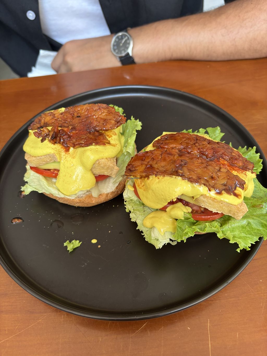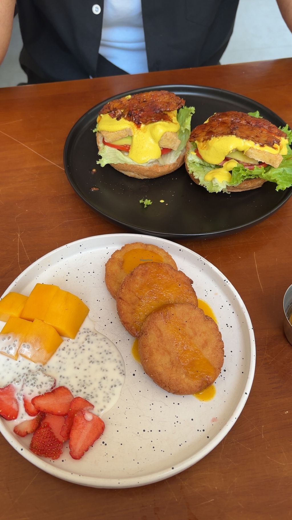 We’ve had the vegan egg Benedict and the tofu pancakes, both of them were perfection. Takes a while, so wouldn’t come here if you’re in a hurry. If you have some time, this is the place to come to! The napoleon cake didn’t quite match our taste but they have several cakes to choose from. The store is super cute and big, with a seating area inside and outside as well. We will definitely come back and try more foods. Definitely recommend the egg Benedict! Huge menu.