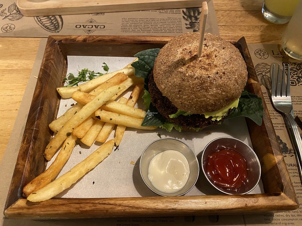 Tasty food. Nice Burger with fries. Delicious tacos. Awesome crepes! A Great variety of vegan dishes.