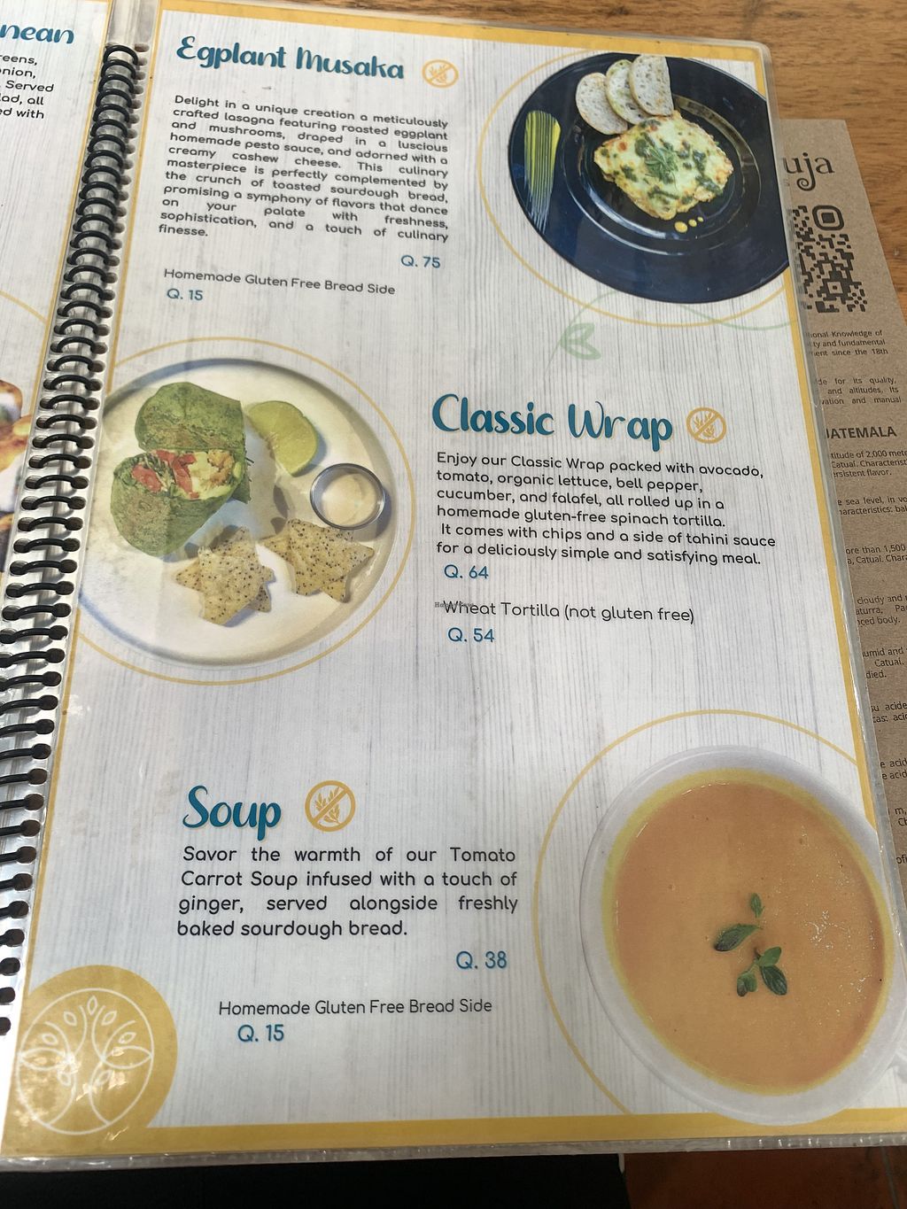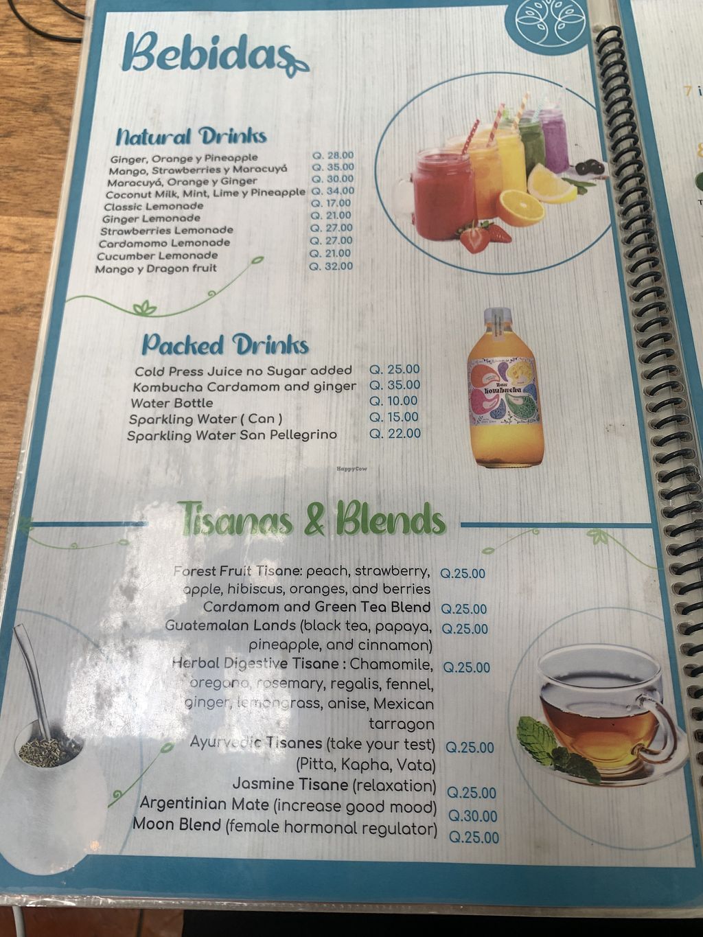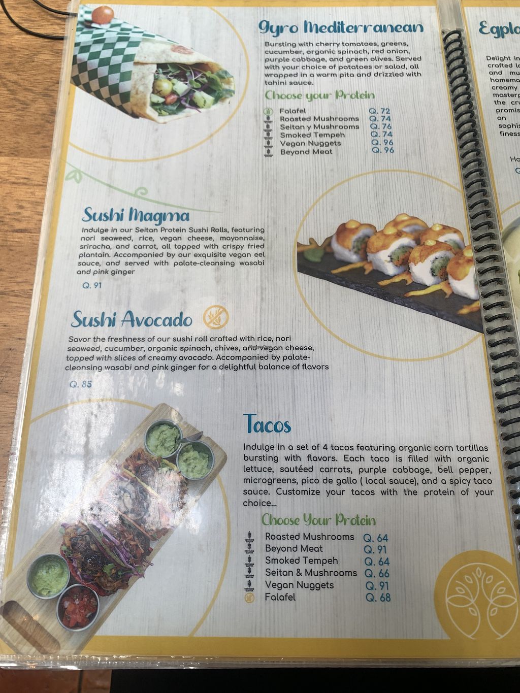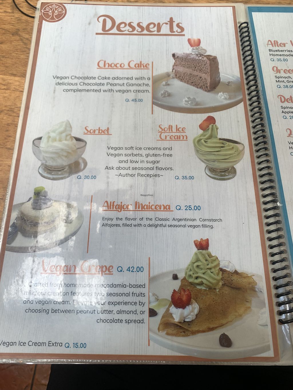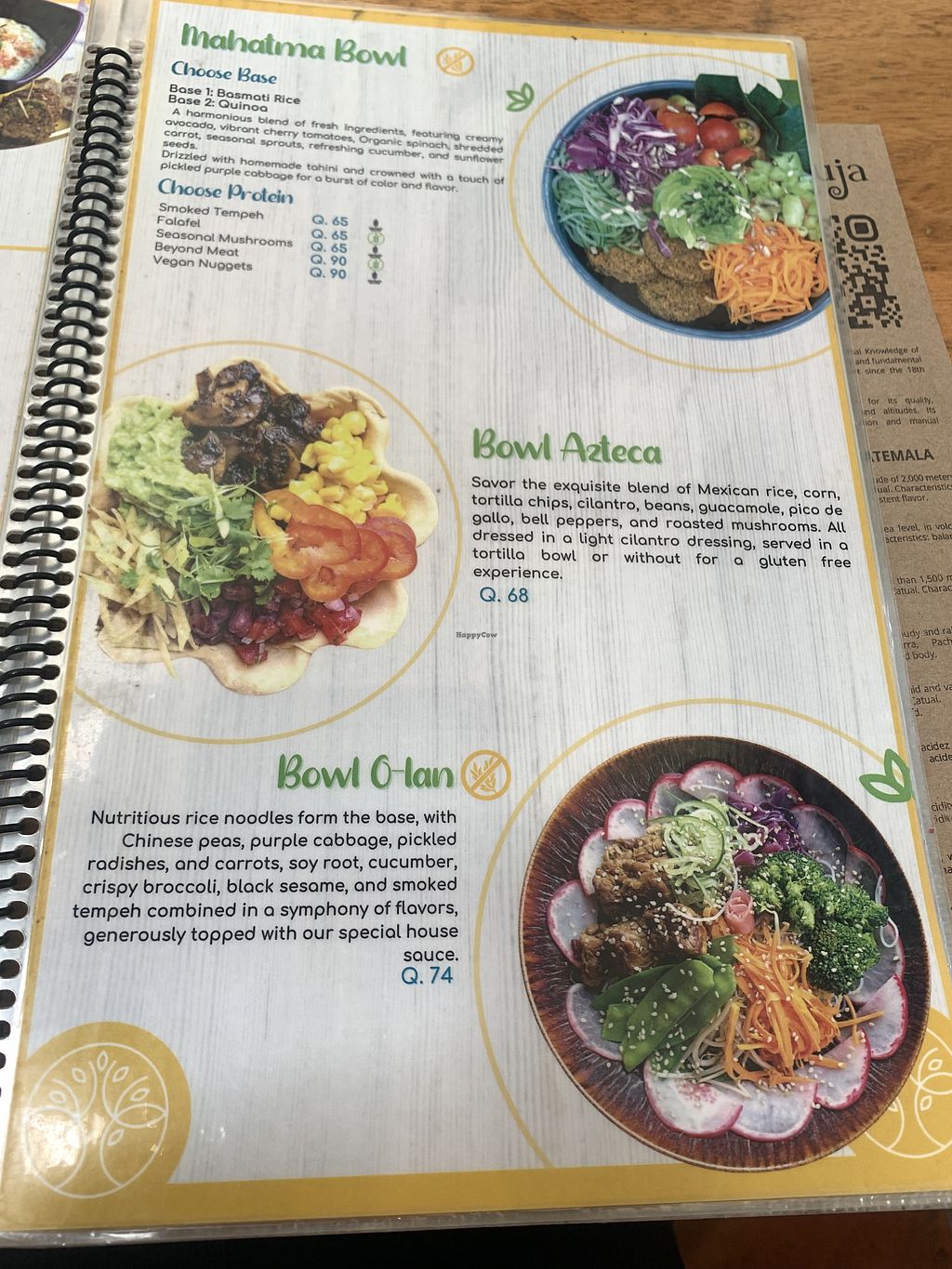 Amazing all vegan place! Menu is incredible, lots of options from local Guatemalan cuisine to pizza. Amazing smoothies and drinks. And deserts as well. Excellent service and very cool atmosphere. Highly recommend.
