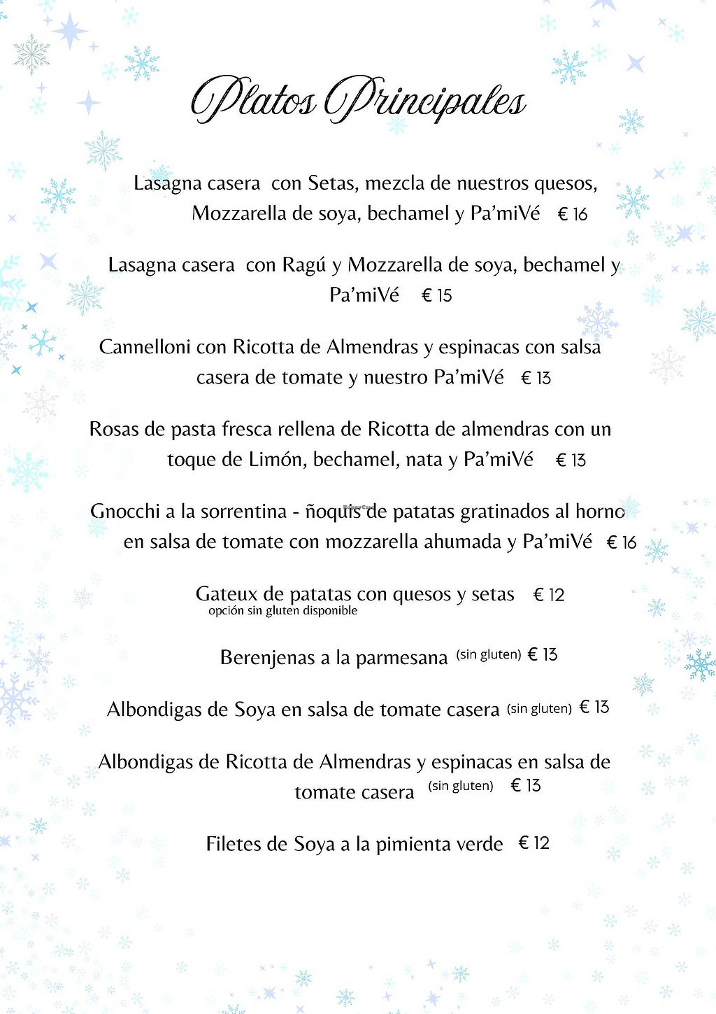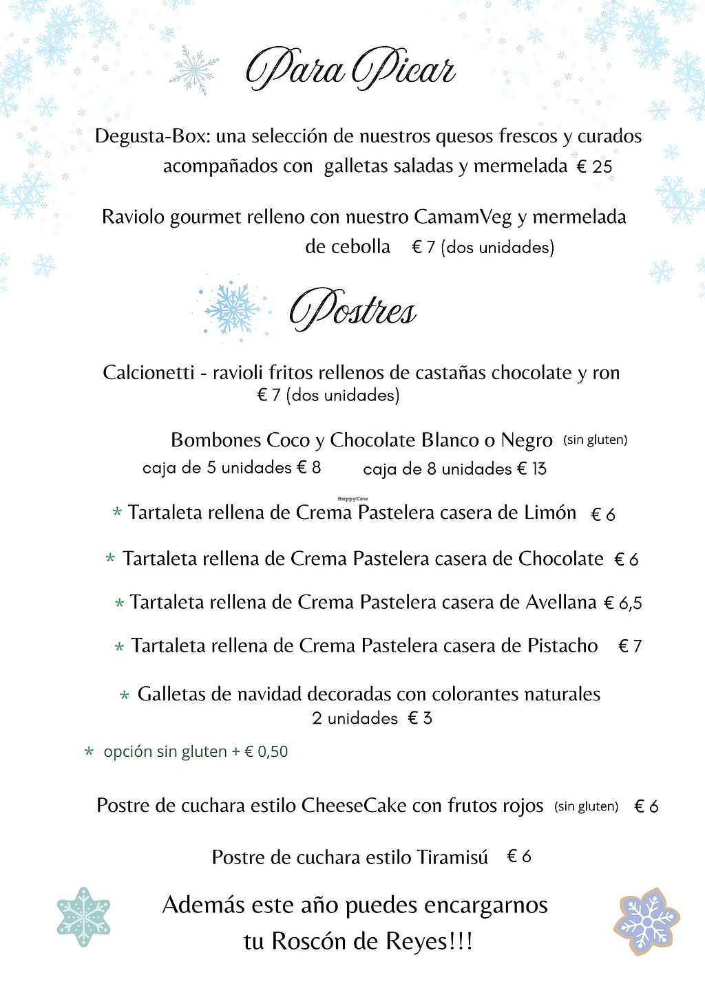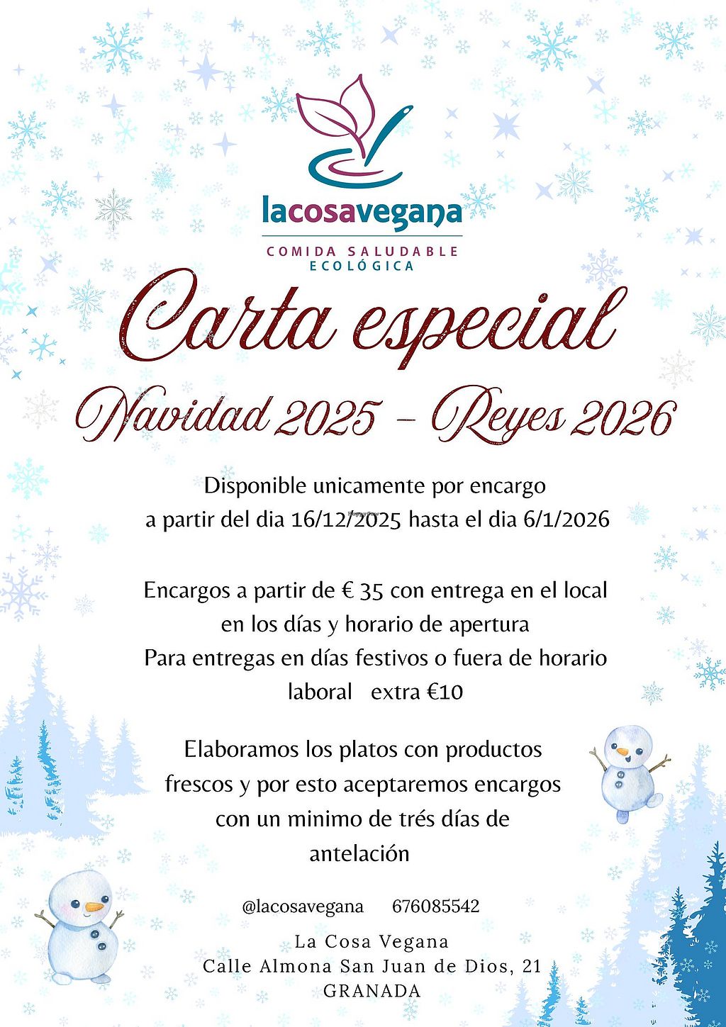 Special Festive Menu available only by pre-order