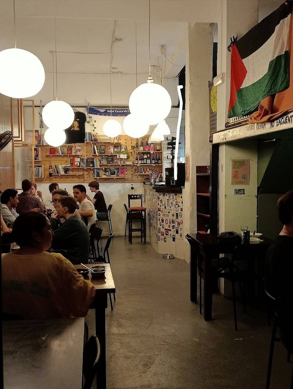 Recomendado llamar para reservar mesa - el sábado era un no parar. Algunas cosas a tener en cuenta: Tienes que registrarte como miembro de la asociación cultural, incluyendo nombre completo, dirección de correo electrónico y DNI. Solo efectivo. Es autoservicio: Te sirves el agua, coges los cubiertos, etc. El personal solo te trae los platos. Me atendió una chica argentina muy simpática, el servicio en general es bueno. También destacar mucha parafernalia peyorativa contra "TERFs", en general un tono bastante hostil si no estás de acuerdo con la teoría queer, pronombres, y demás. La comida en sí estaba normal. Se paga la voluntad consciente, yo dejé 15 euros.