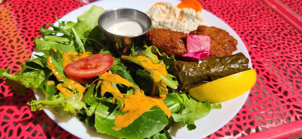 They have a separate vegan menu, and the staff was kind and helpful. The falafel wrap was tasty, and came with a side salad, pita bread, and hummus.