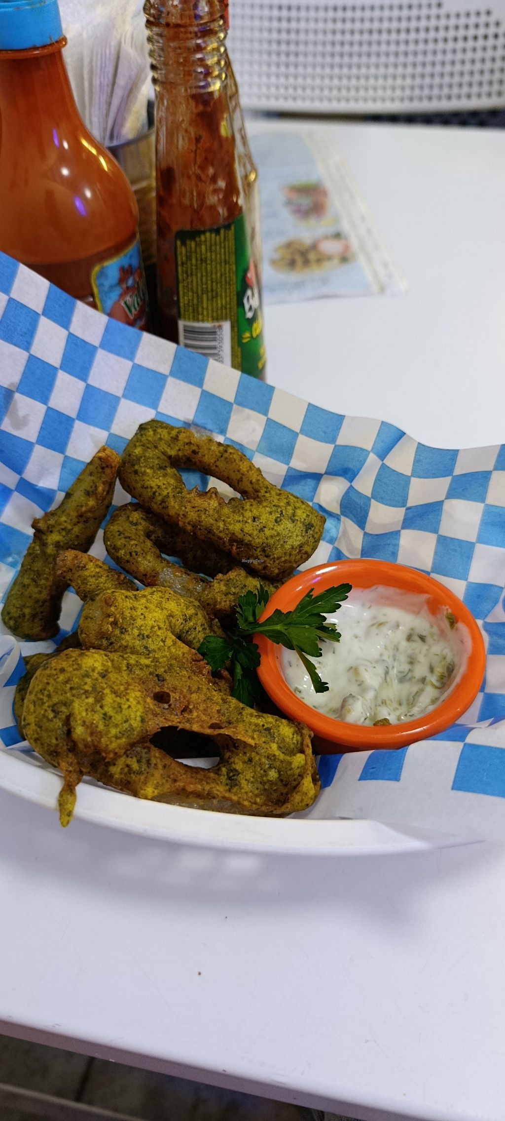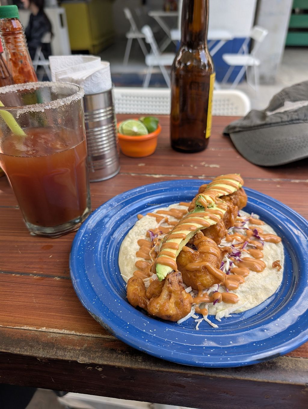 We ordered cocktail de hearts of palm, agua chili, a Baja taco and not calamari. I especially loved the cocktail and my boyfriend enjoyed his veg Clamato michelada. Very nice people. Absolutely recommend!