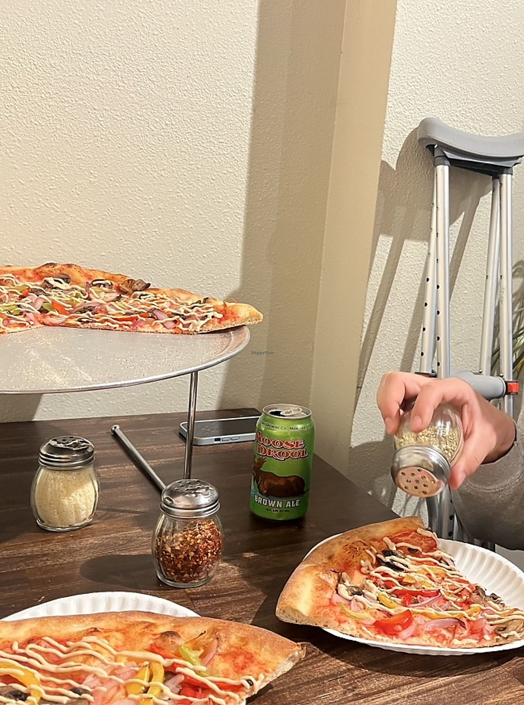 Cons: Music inside cafe was awful and loud , Unable to customize pizza slices, No hot vegan cheese (cashew creme on top is cold)