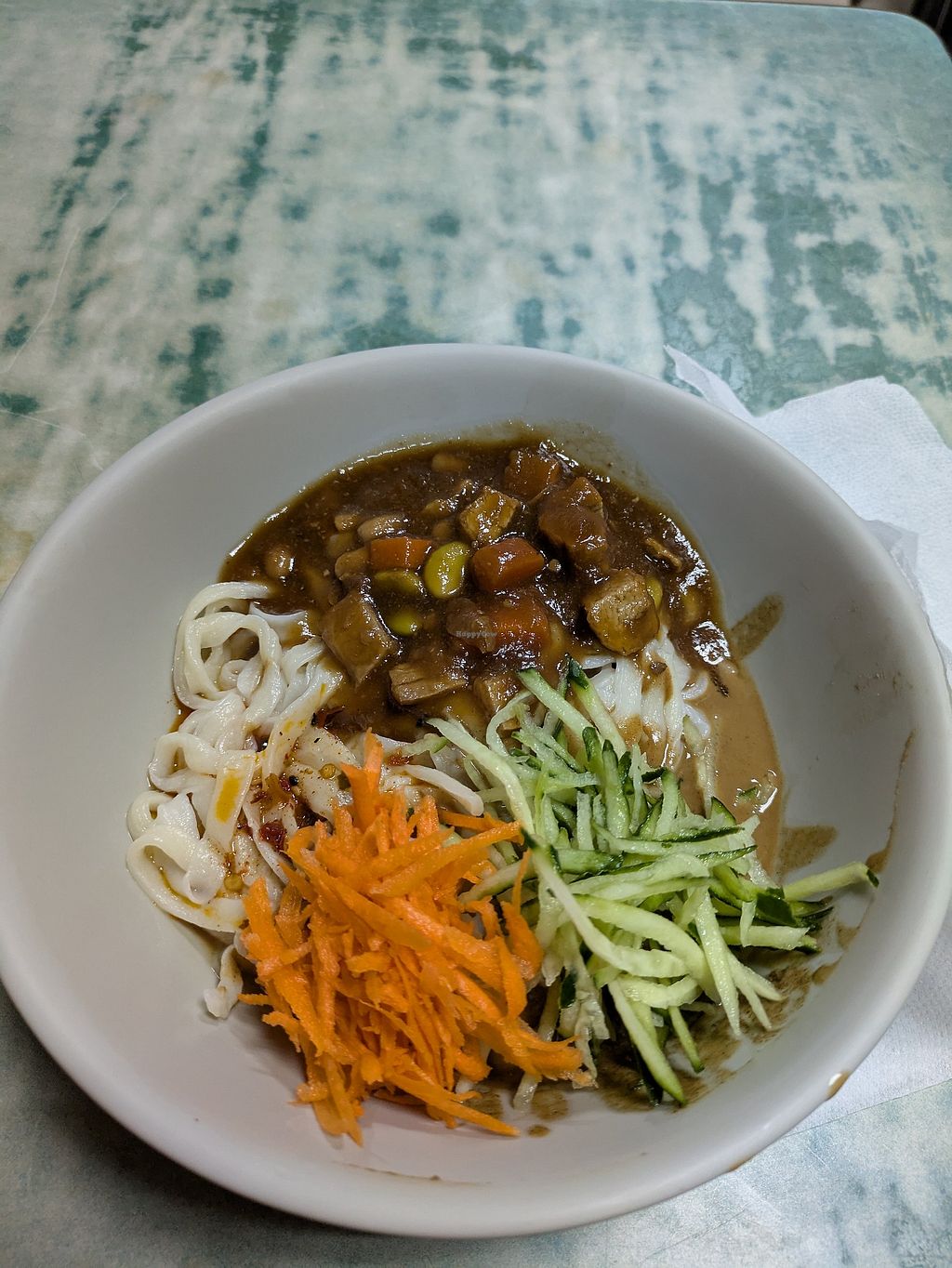 The nice lady explained the menu to me in English. I had the dry noodles with all 3 sauces (spicy, sesame and soybean sauce), and one of each dumplings (6 in total). I loved both and would love to come back for the dumpling soup. If you are in the area and like dumplings, I would highly recommend checking it out. Lovely people and amazing, cheap food!