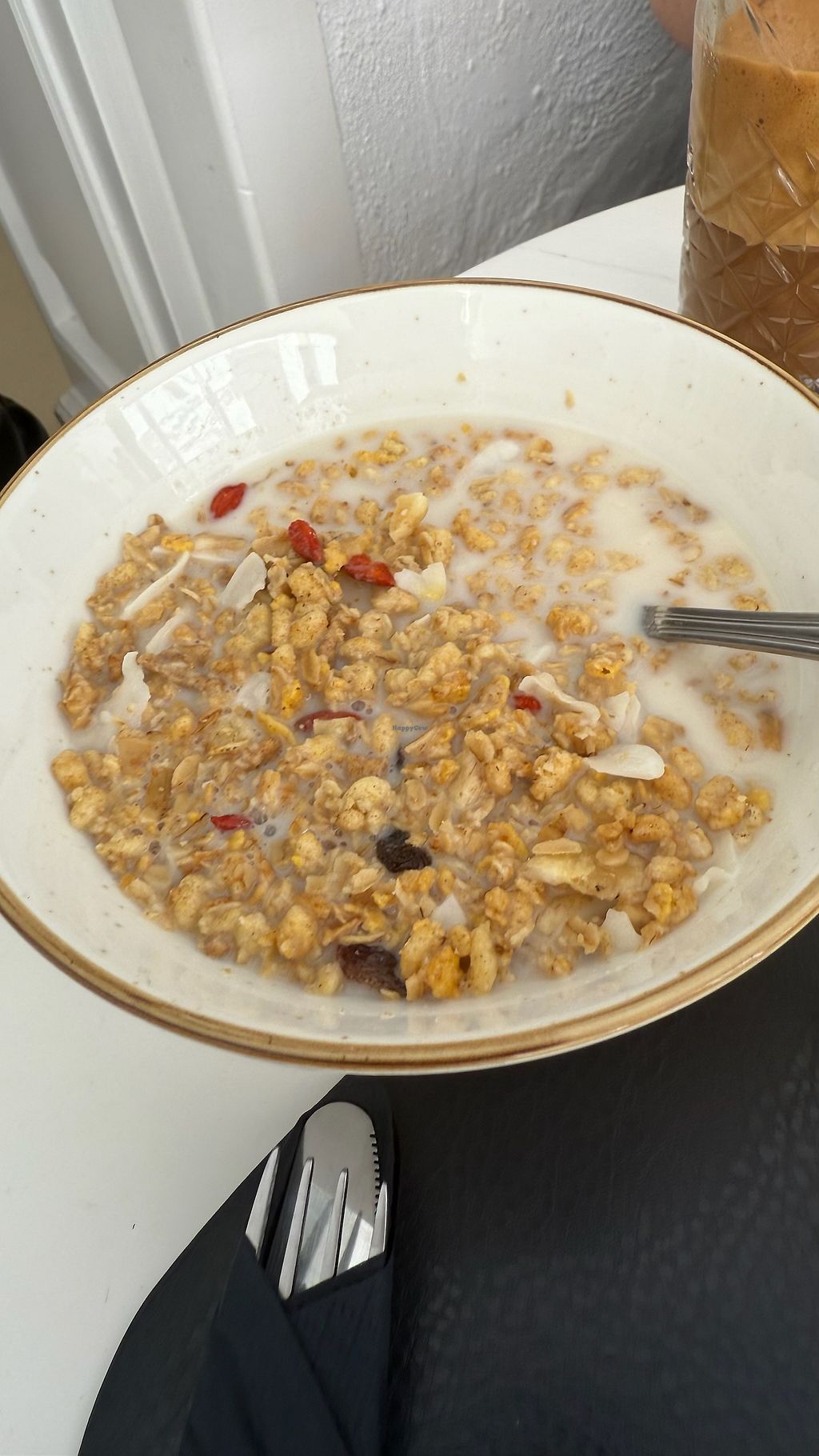 I wanted some milk and cereals for breakfast and this place looked perfect. they have a vegan breakfast option in the menu consisting in tea/coffee, almond milk with granola, freshly made orange juice and two slices of baked bread with peanut butter, maple syrup, banana and walnuts. Everything was delicious but maybe too much for just one person. Also kinda costly for just one.