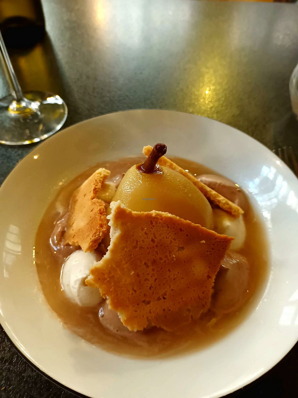 Read moreFinalement nous avons été très déçus, au regard du prix notamment (49 euros pour 4 plats : 2 entrées, plat, dessert) et les vins au verre jusqu'à 11 euros. Les entrées étaient toutes les 2 liquides et trop "recherchées" en oubliant toute gourmandise. On tombe dans le cliché "mangeur de salade" sans couleur. Un plat principal en revanche très réussi à base de chou-fleur rôti. Et une grande part de gâteau chocolat champignons : dommage pour la portion généreuse qu’on aurait souhaité sur les autres plats. Nous sommes sortis sur notre faim et les poches un peu vides.