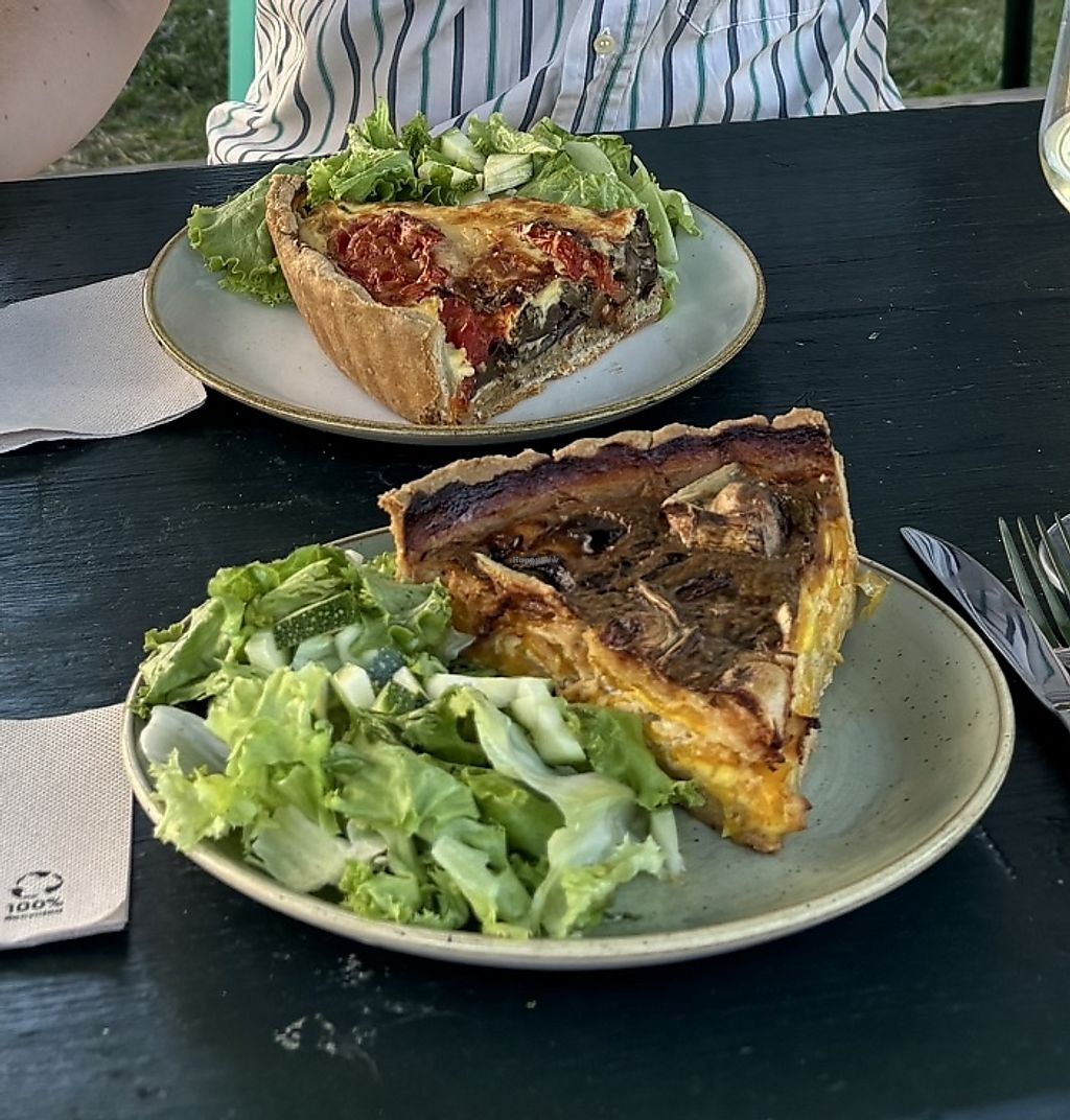 Wirklich nette Bedienung und verschiedene vegetarische Quiches, sowie ein vegetarisches Tagesgericht. Man kann draußen sitzen. Es gibt Bio Weine und interessante Limonaden.