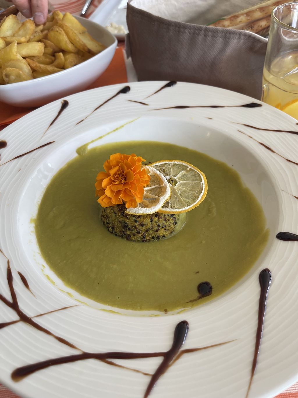 Ho preso uno sformatino di quinoa su crema di piselli molto buona.