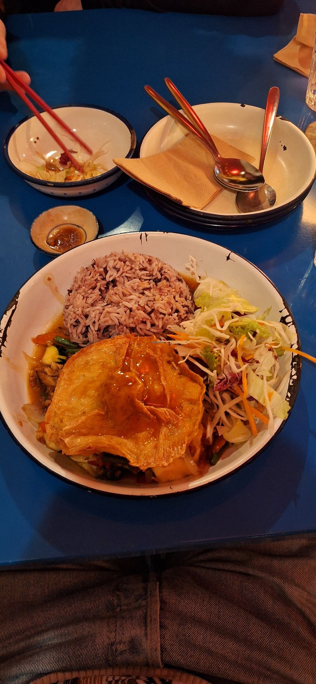 Great variety of dishes, with both small tapas style and large plates available that were fairly priced. The Pad Thai was delicious and had a great level of spice. It was very busy so would recommend booking ahead. Service felt a little chaotic and could have been friendlier.