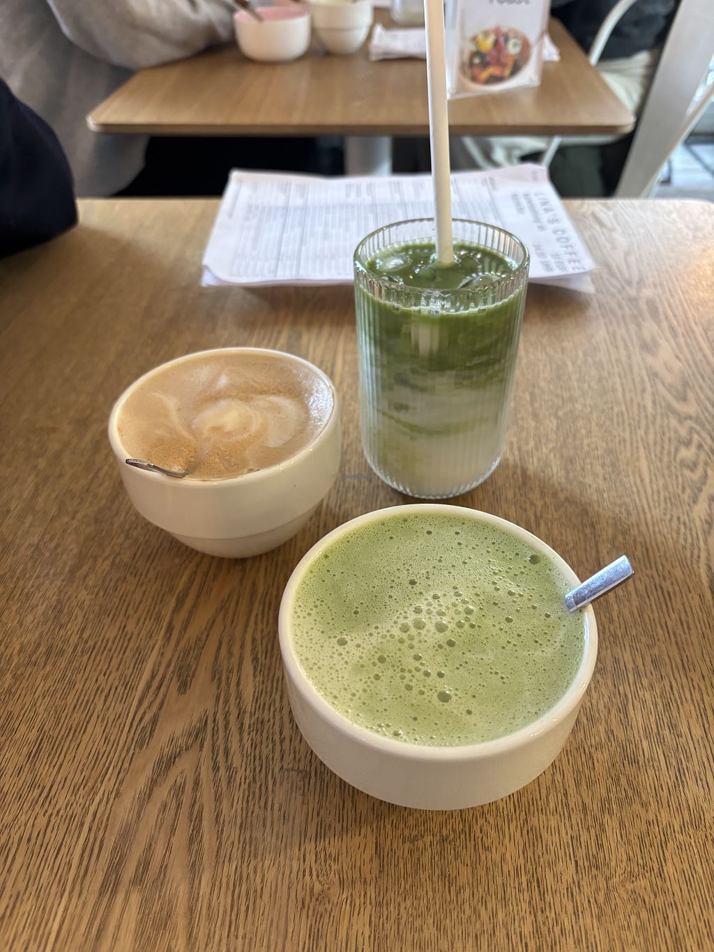 veganes rührei und bagel waren super lecker, matcha ok. beides aber super teuer. lohnt sich trotzdem wenn man vegan und gluten frei in einem café sucht