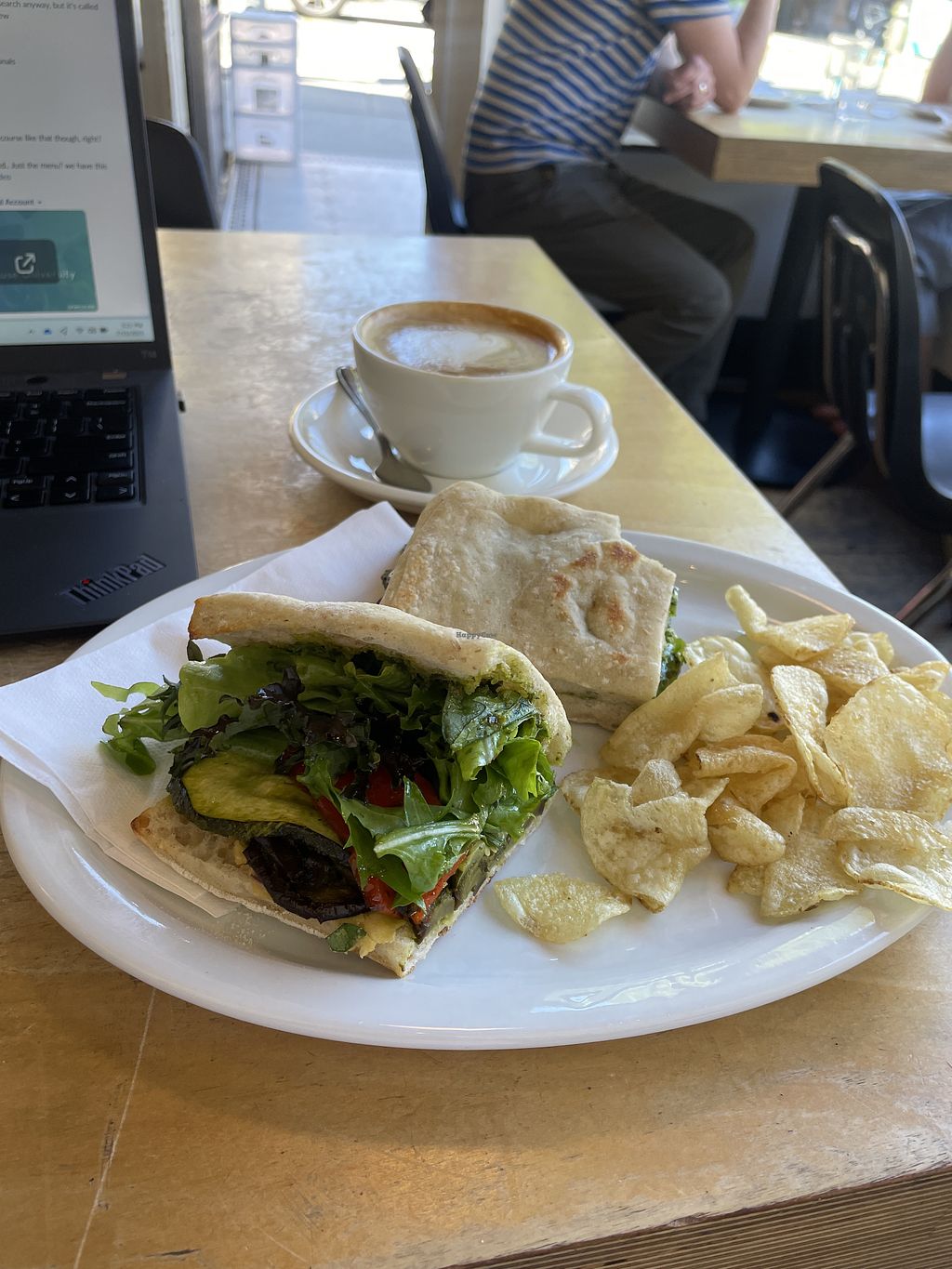 Nice coffee shop. Menu doesn’t list the vegan options but the gal at the register was vegan too which is always great! They made me a roasted veggie sandwich and have a few other sweet options.