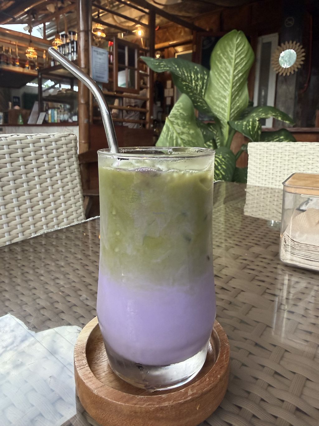 It’s great to find an entirely vegan restaurant in a small seaside town. The menu is big so you’ll find something you like. Prices are on the higher end for this town, but the portions are sizeable so I hat makes up for it. Consider sharing dishes (or coming very hungry) since the portions are big. I had the pancakes (huge and filling), the local noodle dish, the adobo chick’n, and a smoothie bowl. All were delicious. Note that the fruit drinks are quite sweet and must have added sugar. The ube matcha was only moderately sweetened. I didn’t try any of the coffee drinks.