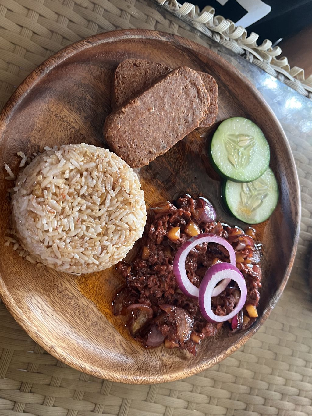 Variety of vegan options, the restaurant ended up being our go-to spot in Moalboal , we even ordered takeaway and the food hit the spot. While above average in price, portion sizes are fairly generous. Friendly staff, one evening they even gave us a complimentary banana bread as they were closing the shop. They also had an actually good matcha latte which we had been craving throughout our time in the Philippines. Also got to taste Adobo for the first time here which was great, wish we took photos of it. The only negative comment is that they got our drinks order wrong twice on two separate occasions but we're very accommodating in fixing the order.