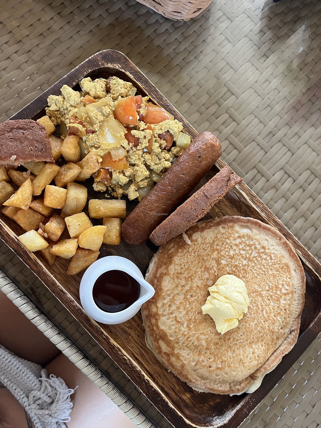 For one it's so exciting to have such a huge many with so many options I'll be vegan! I had to chat with the owner and she is absolutely a beautiful person. We spoke about the menu and I love that she makes most of the items herself. Very few are outsourced. I've had the pancakes and they are absolutely amazing! Also had the breakfast tacos which were incredibly huge portions. Also tried the adobo and the spam and everything is absolutely tasty. You really can't go wrong here! And what everyone needs to understand is that every single meal is made as the order, so you will wait up to 30 minutes but trust me when I tell you it is worth it!