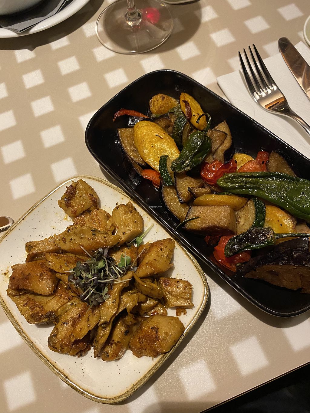 Yes there are some options and you can make a dinner for yourself from the sides section(like I did) but I wouldn't go here as a vegan if my family didn't want to try a traditional schnitzel. I took roasted vegetables and vegan chicken. They tasted good but not enough for a fancy place like this. I don't think it is so hard to put proper vegan main dishes to the menu.