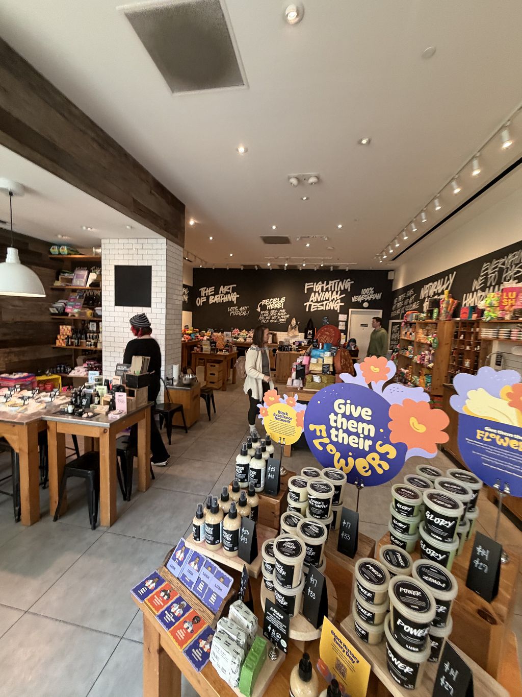it was a super pleasant surprise to discover LUSH, all of their products are cruelty free and many are labeled vegan! they even have water soluble packing peanuts that i tasted! (bland, but fun… they melt in your mouth!)