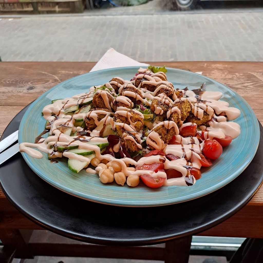 All Things Falafel. A vegetarian falafel bar in the center of the city offers vegan options. Accepts some credit cards but does not accept Visa or Mastercard. Open Tue-Fri 11:30-14:30, Tue-Wed 18:00-20:00, Thu-Fri 18:00-22:00, Sat 11:30-22:00, Sun 11:30-18:00.