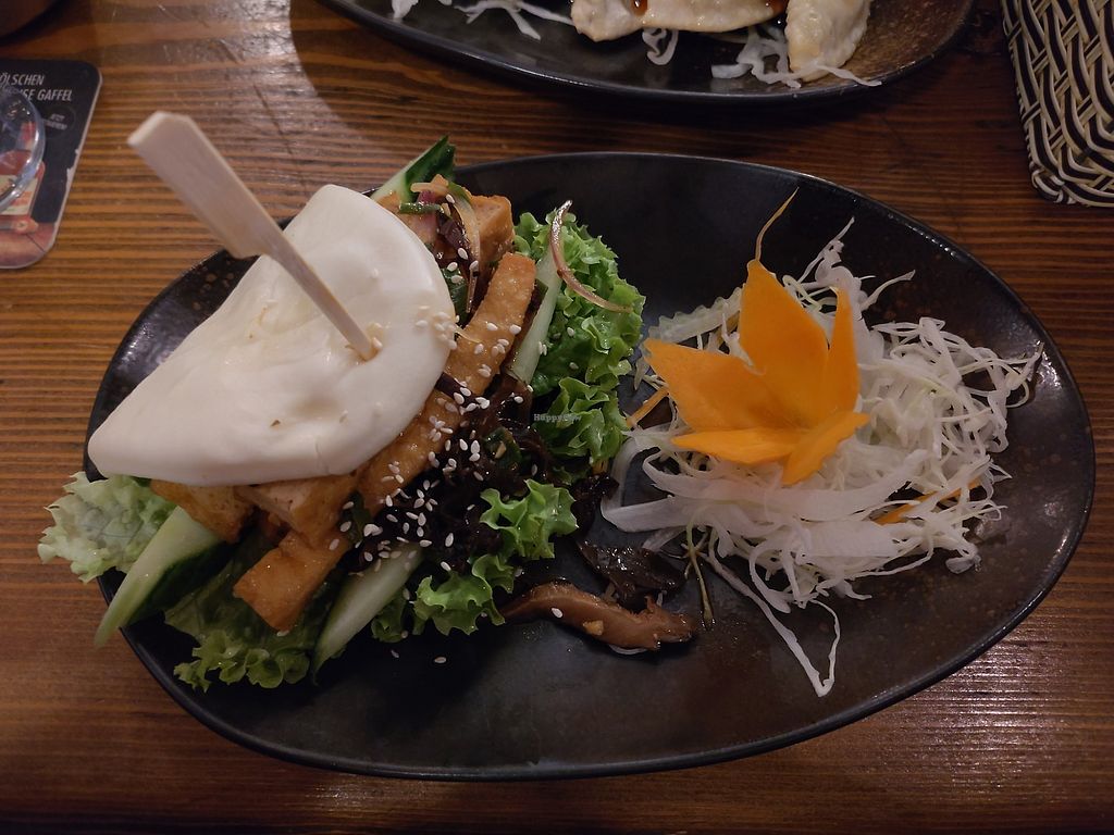 Alle veganen Gerichte sind auf einer Sonderkarte. Es gibt einige Gerichte mit „Ersatzprodukten“, wie veganem Fisch oder veganer Ente. Wir hatten verschiedene Gerichte und alles hat sehr gut geschmeckt.